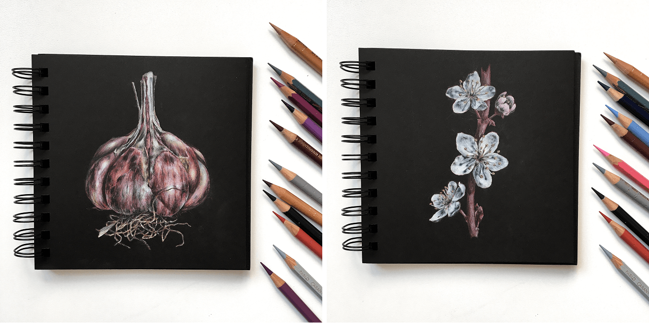 Поговорим про тонкости обработки рисунков на чёрной бумаге для сохранения глубины цвета и контраста. Нарисуем самостоятельную работу