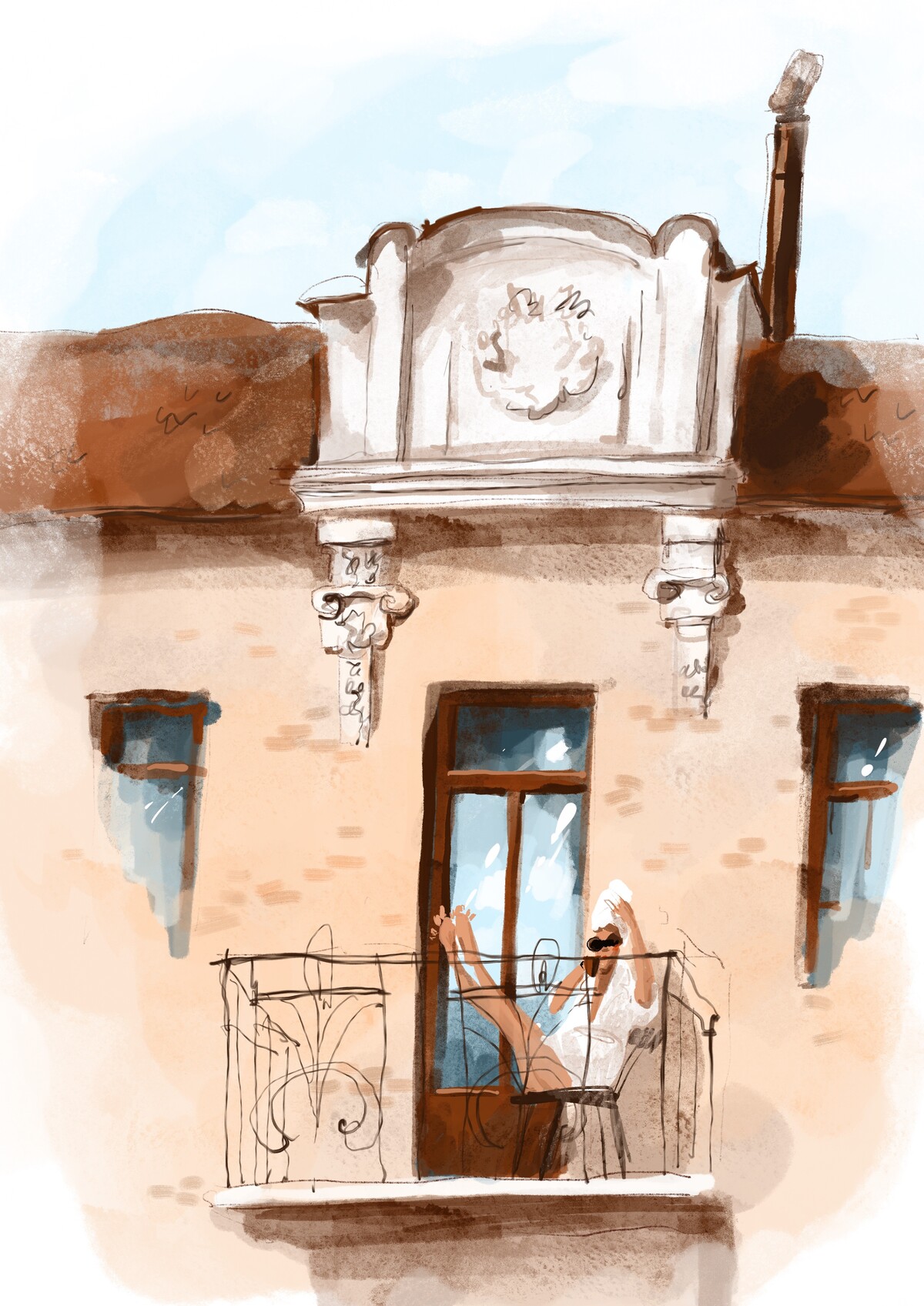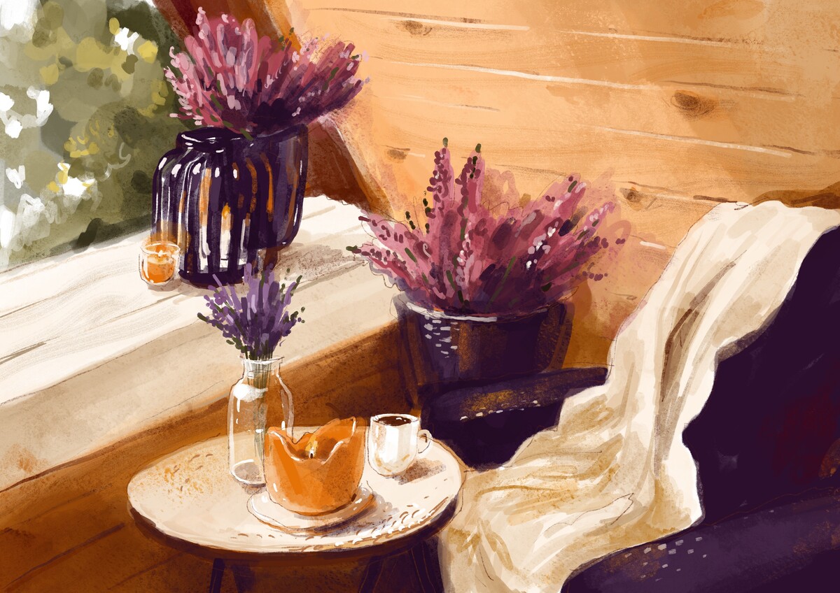 Все, кто пройдет курс «Основы digital-рисования», не только разберутся в базовых понятиях работы в Procreate, но и будут чувствовать себя в рисовании свободно, легко и уверенно, как эта барышня, попивающая кофеек на балконе. Вообще любой объект, любой сюжет — не проблема!