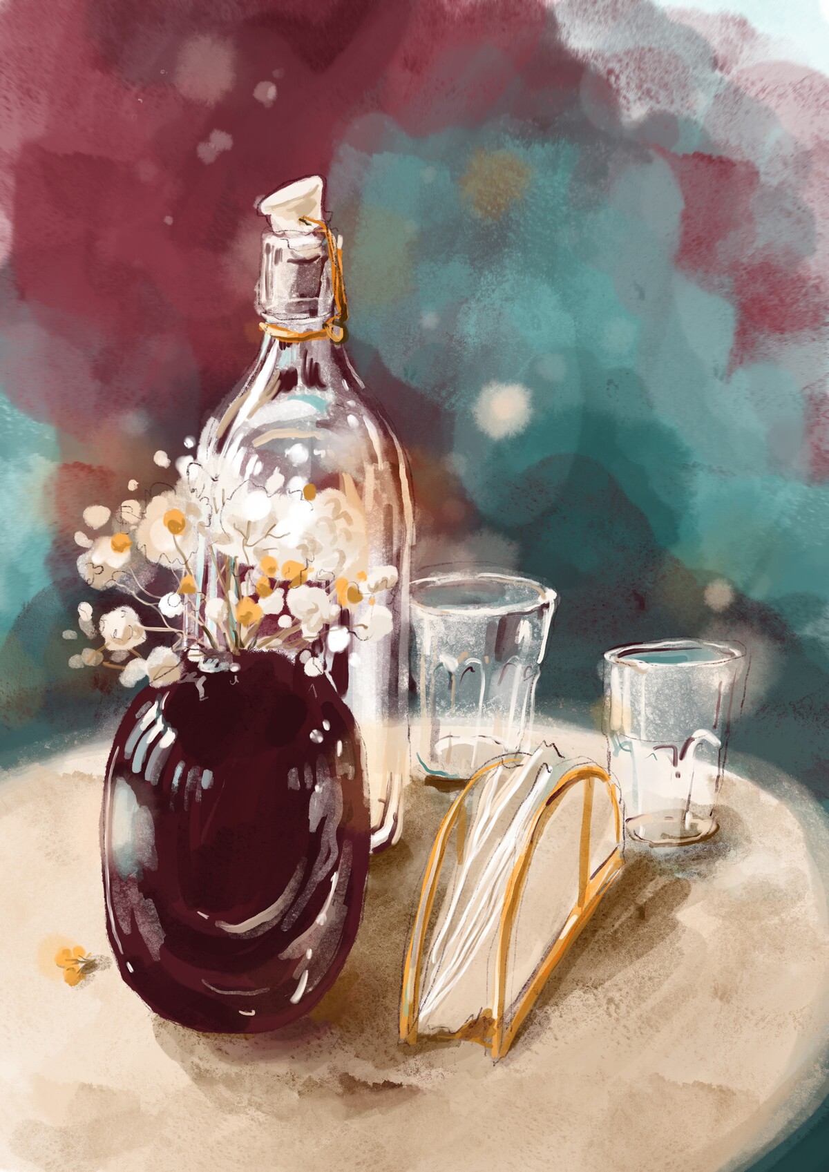 *Если возникают сложности с рисованием на планшете, вы можете работать «живым» материалом — акварелью!