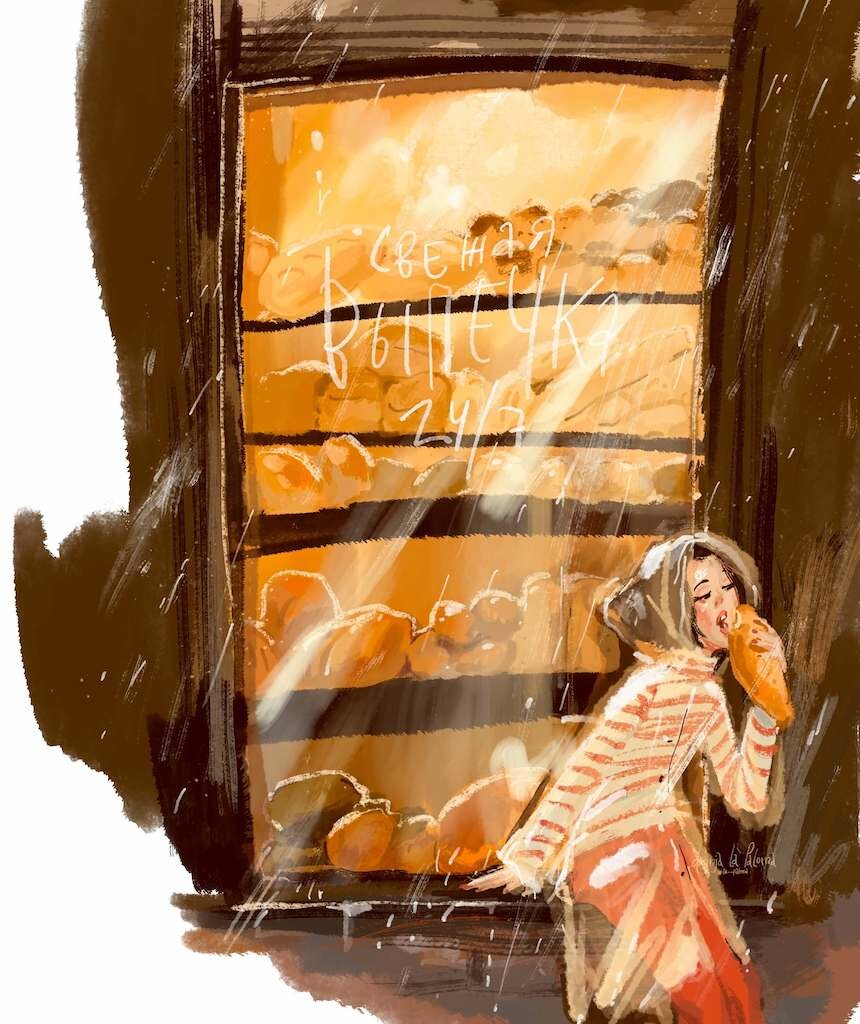 - В коммерческой иллюстрации работает с самыми разными клиентами (Avon, Bioderma, кофейни, нефтяные компании, логистика, бытовая техника, мода, хлебокомбинаты и т.д.).