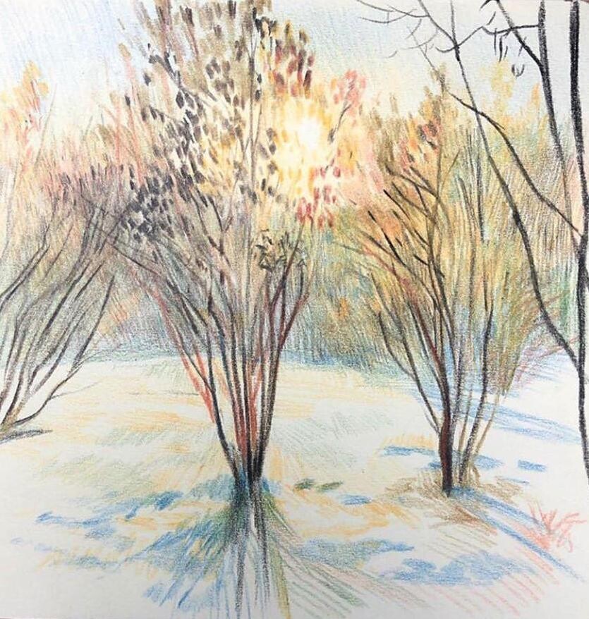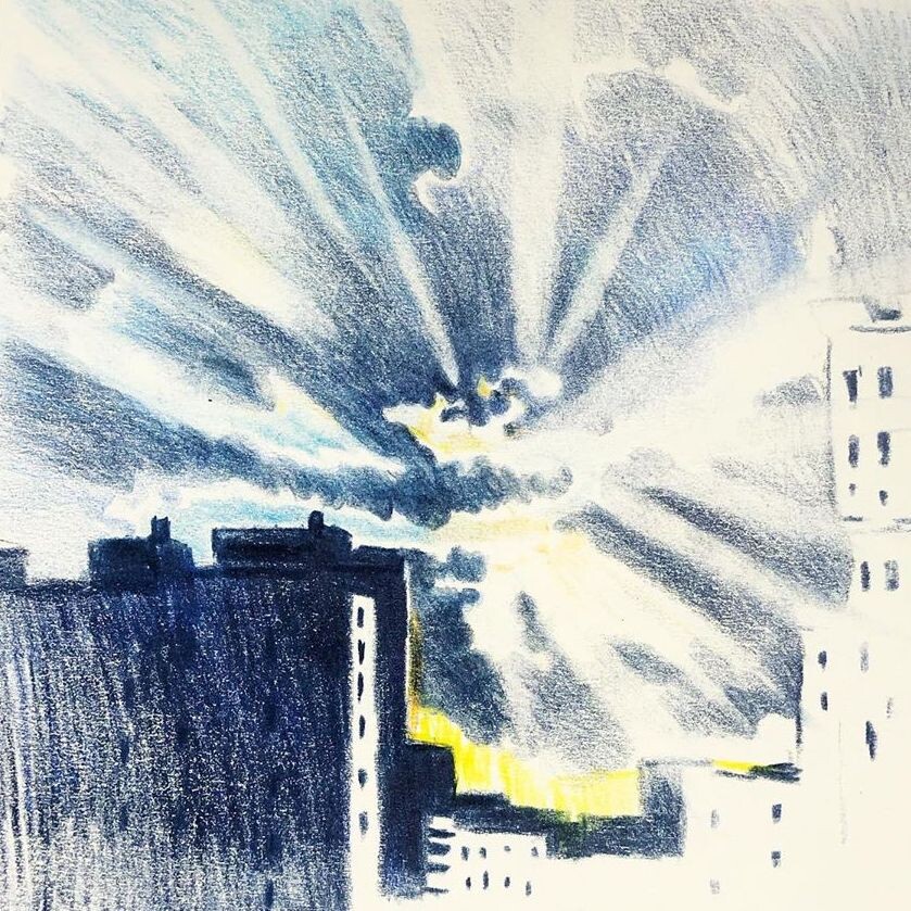 Цветные карандаши и ластик — лучшие друзья скетчера, когда надо быстро и эффектно зарисовать свет в моменте, ведь другого шанса запечатлеть чудо уже не будет.