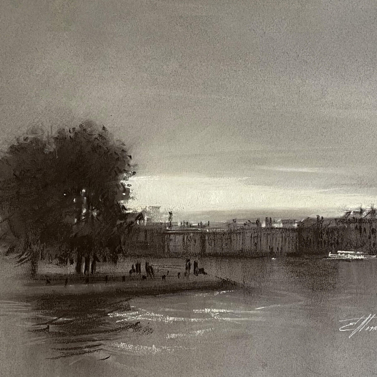 «В академической школе работа с любым материалом всегда начинается с гризалей. Когда мы убираем цвет, то остаётся только тон. И это очень хорошо прокачивает навык видения в тоне, умение передавать объём.