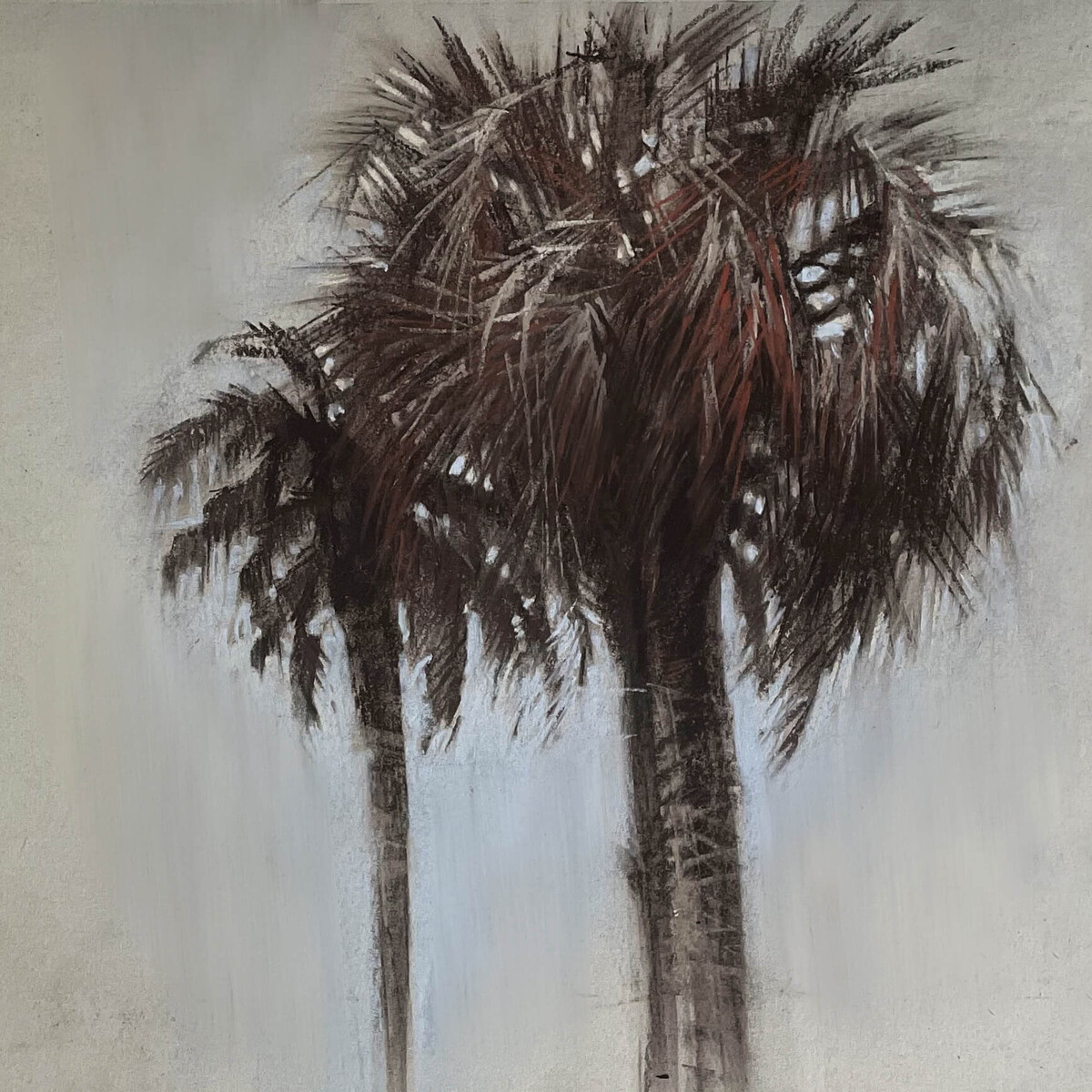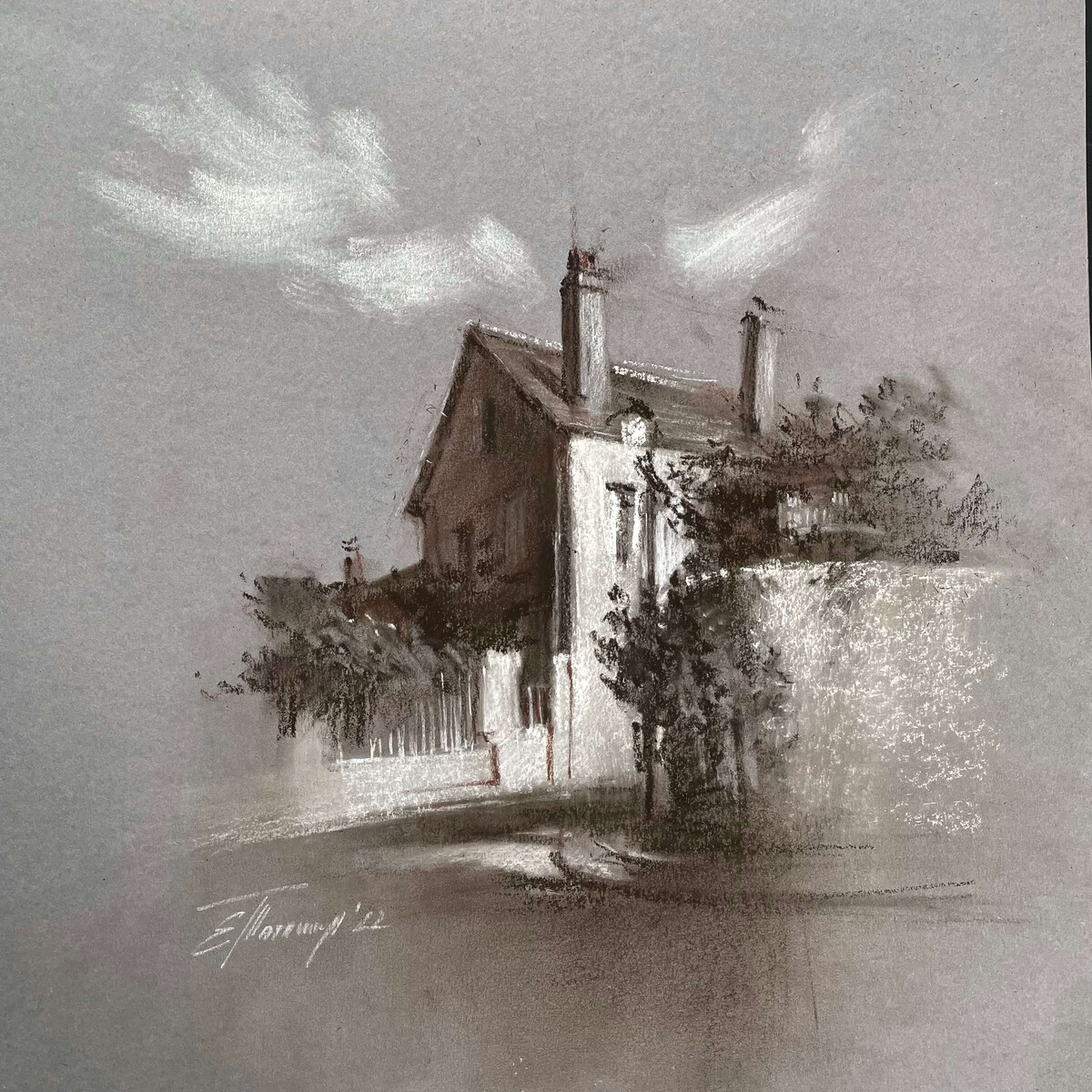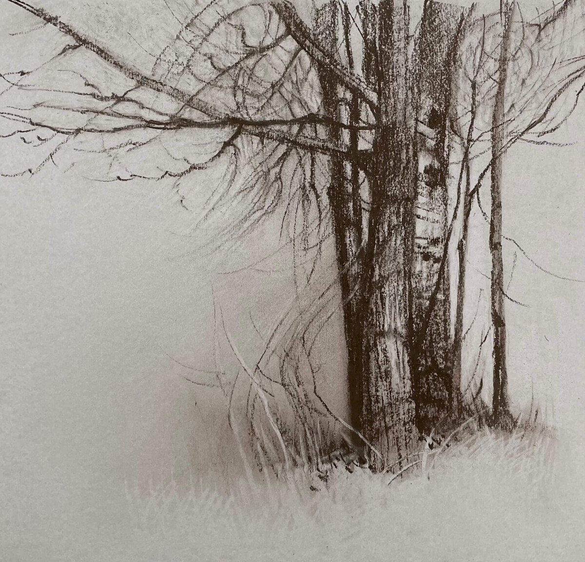 В каждом блоке начинаем с упражнений, простых угольных работ и заканчиваем серьёзной графикой с цветными, пастельными акцентами.