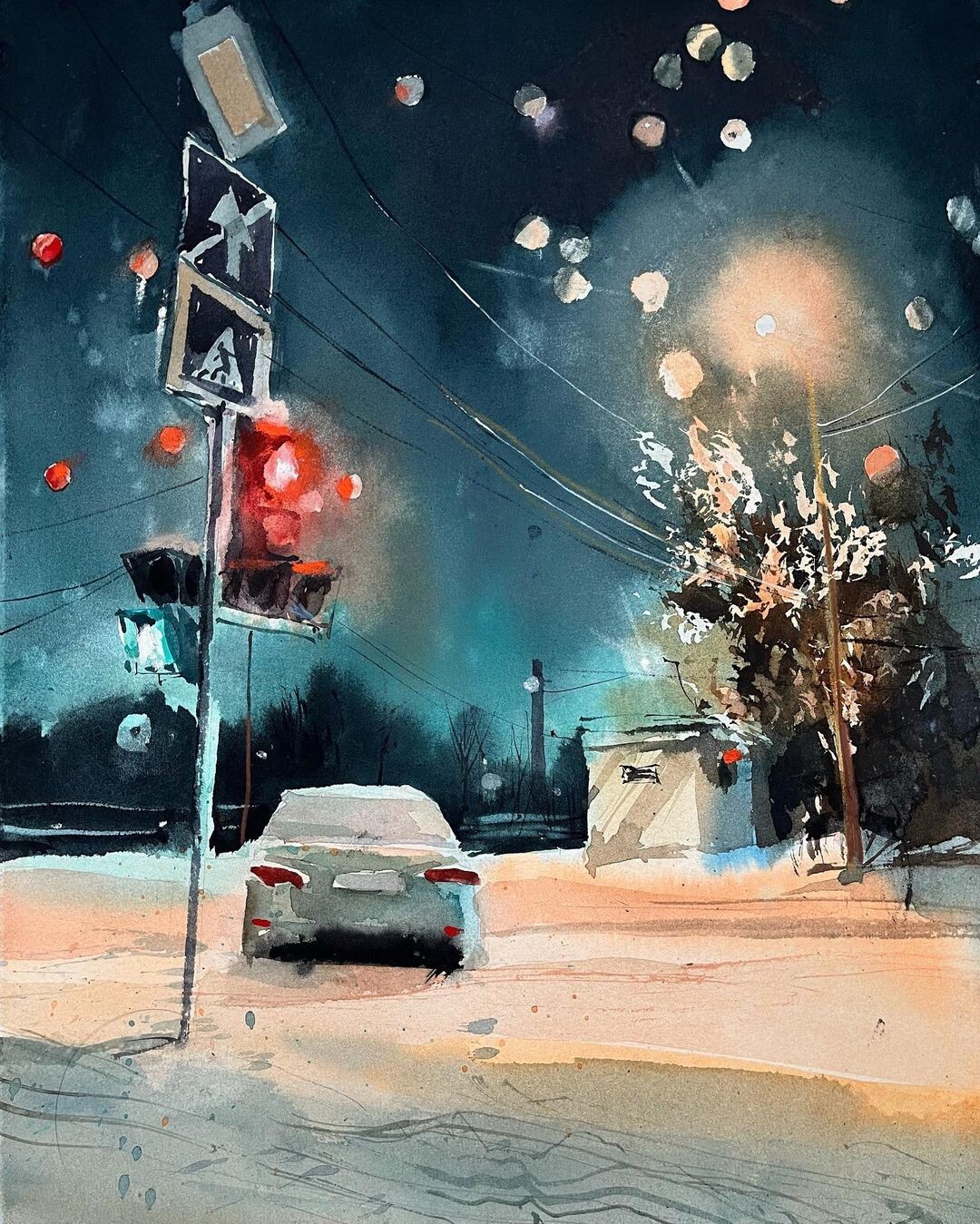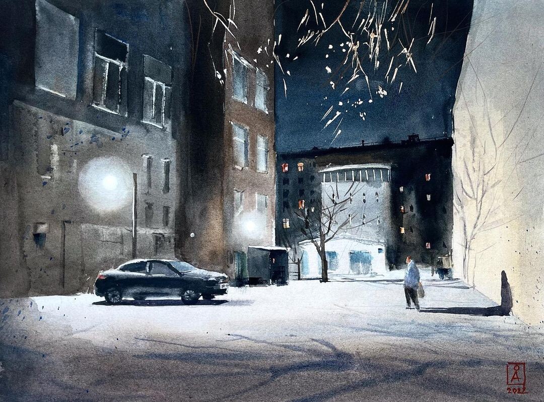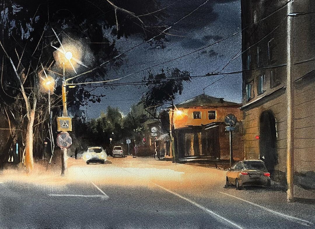 «Часто акварель это лёгкое, а местами даже прозрачное изображение, но ведь на этом её потенциал не заканчивается, — отмечает Ольга. — Ученикам бывает страшно пробовать тёмные сюжеты, а они обладают своей магией и притягательностью, которую точно стоит испытать».