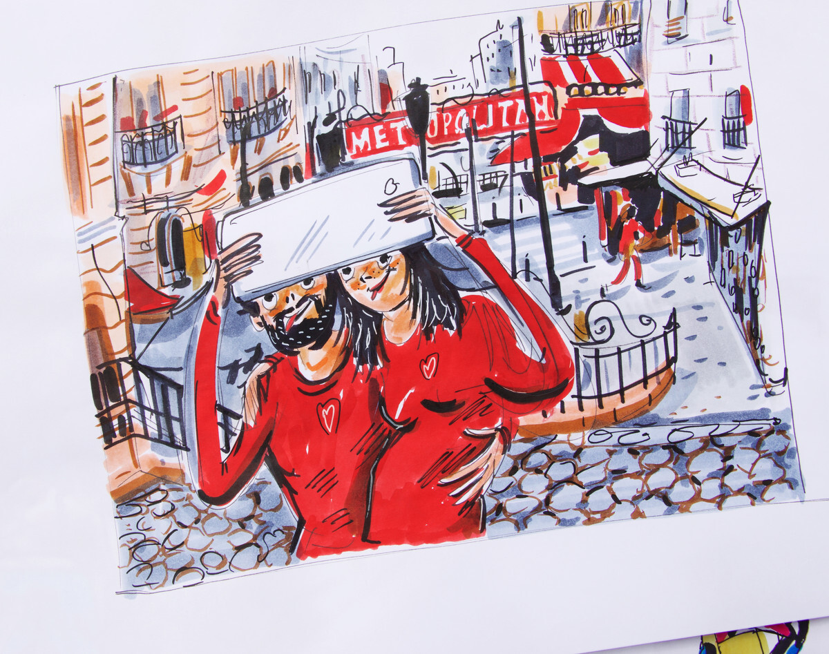 За последний год съездила с Артемием Лебедевым иллюстратором в экспедицию в Мексику, порисовала для Puma, Lamoda, «Татлер» и др. Нарисовала вручную 640 открыток за месяц, поскетчила на разных частных мероприятиях и провела много живых и онлайн-курсов в нашей Школе.
