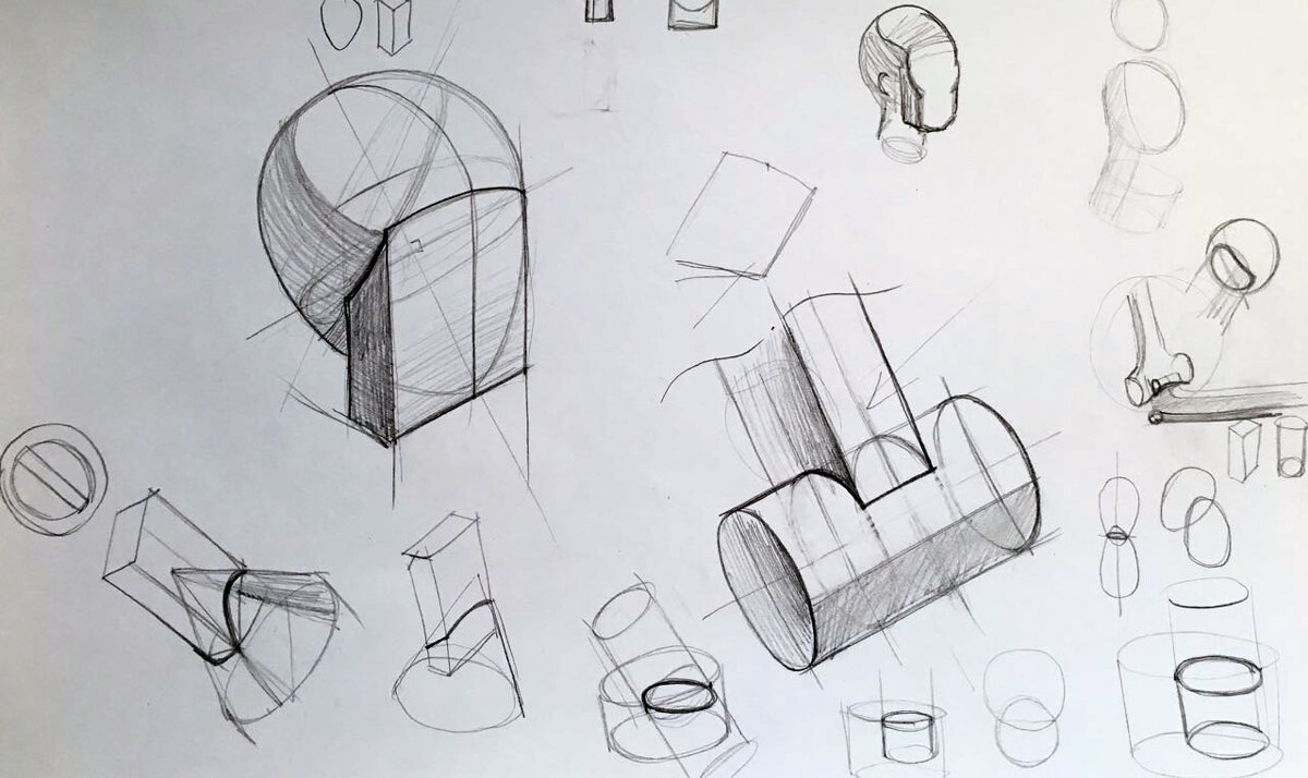 Чтобы усвоить это простое правило, мы начнем с малого — будем освежать знания в области геометрии, экспериментировать с объемными фигурами и уже после этого изображать элементы человеческого тела в трехмерном пространстве.