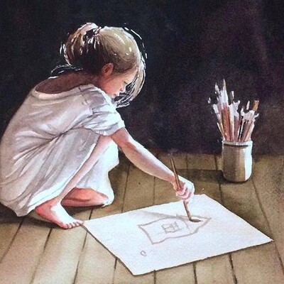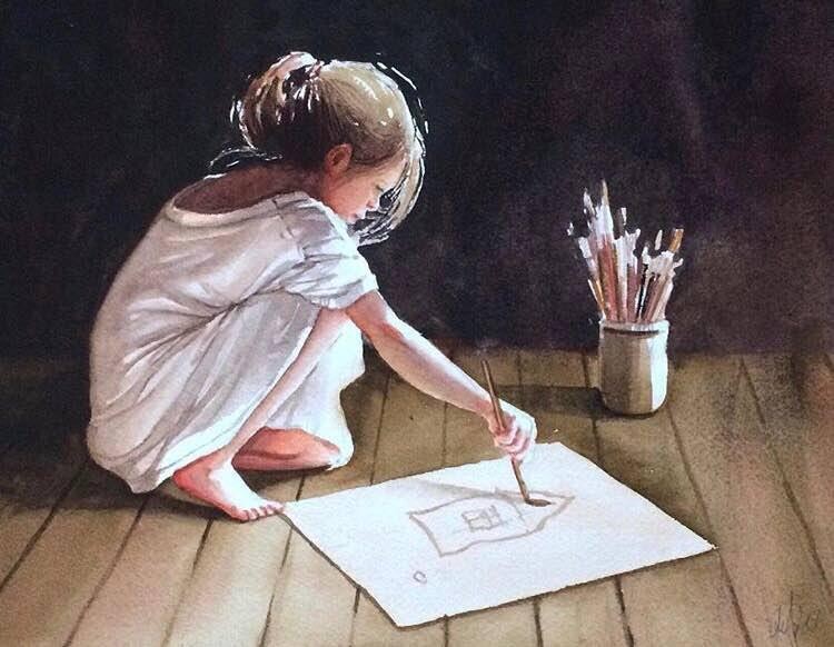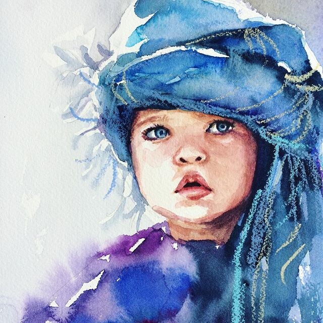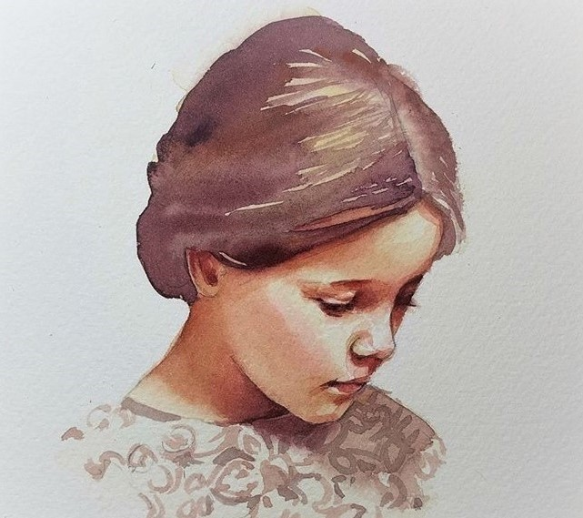 Осваиваем технику лессировок. Узнаем, чем детский портрет отличается от портрета взрослого человека. Изучаем нюансы передачи детского лица в акварели. Рисуем портрет ребенка.