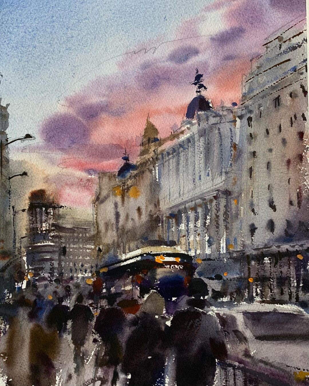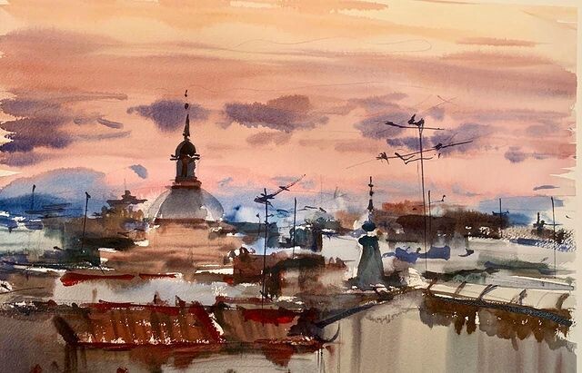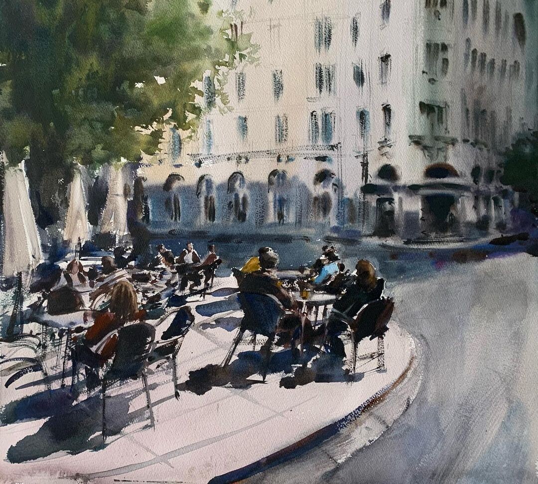Учимся упрощать сложные урбанистические панорамы до понятных объектов. Передаём свет в акварели и внедряем в сюжет людей.