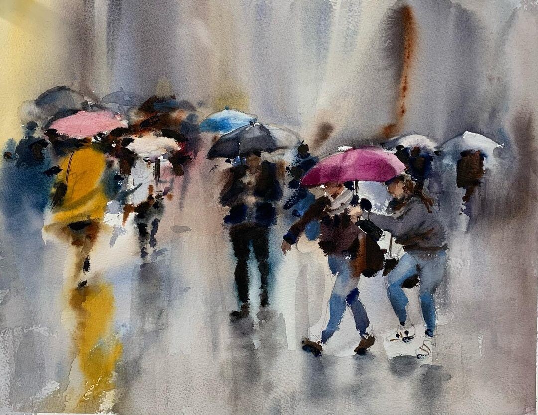 Узнаем, как при помощи акварели, вводить в сюжет людей и городские атрибуты.