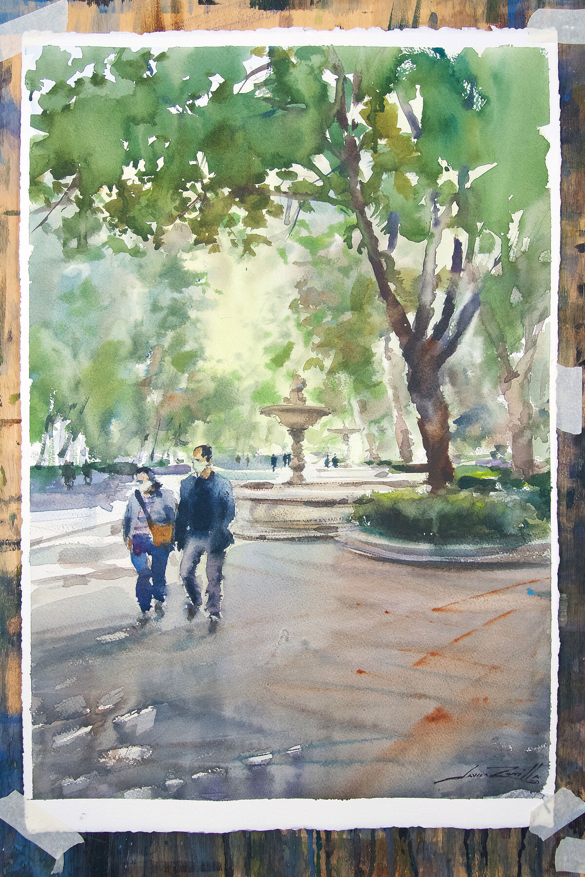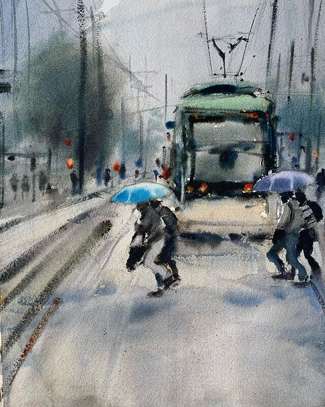 Упрощая запечатленные моменты, Хавьер Зорилья играет с прозрачностью и пигментами акварели, участками белой бумаги, влажной и сухой техниками, наделяя свои работы динамикой и особым настроением.
