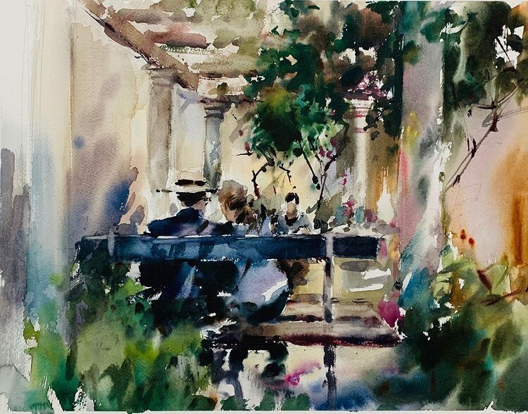 - Разбираемся, как передавать свет в акварели и внедряем в сюжет людей.