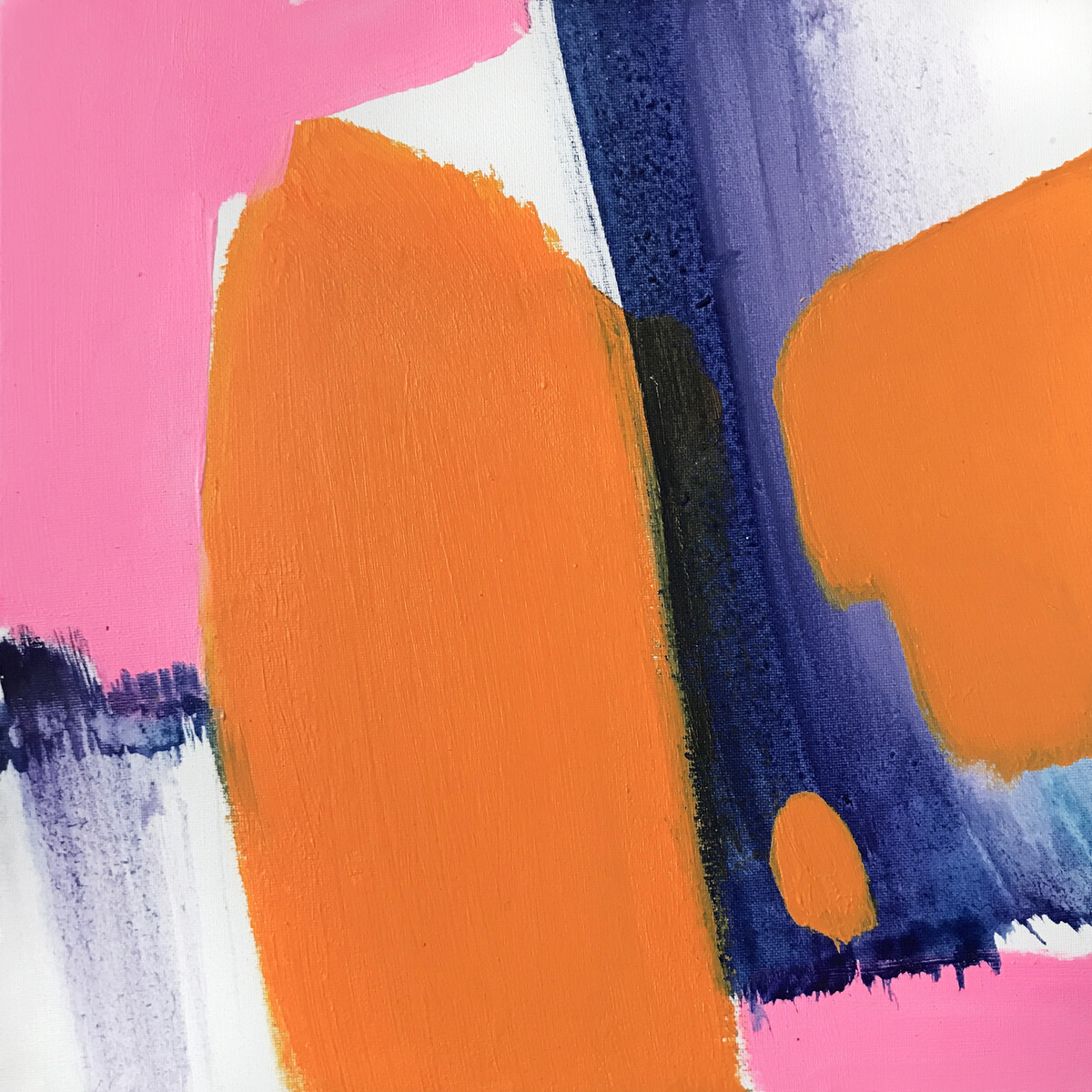 - Определяем, какие цвета наилучшим образом выразят задуманное чувство, подбираем оттенки и несколькими широкими движениями закладываем пятна. Формат работы маленький, 20×20 см.