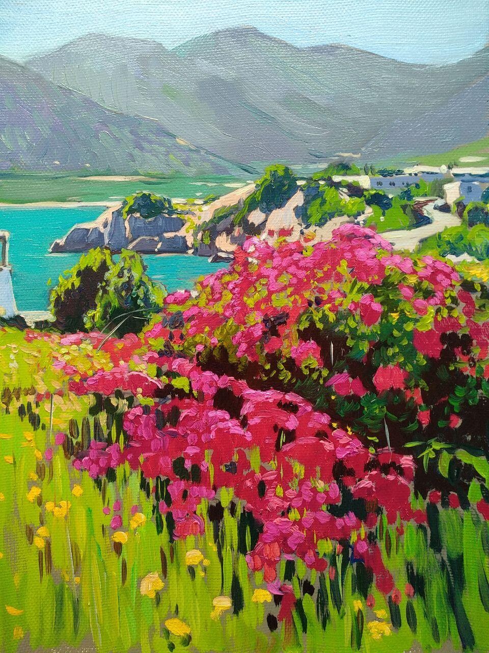 — Натюрморт-пейзаж с цветами бугенвиллеи