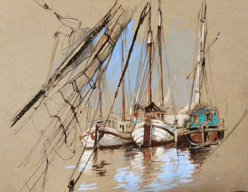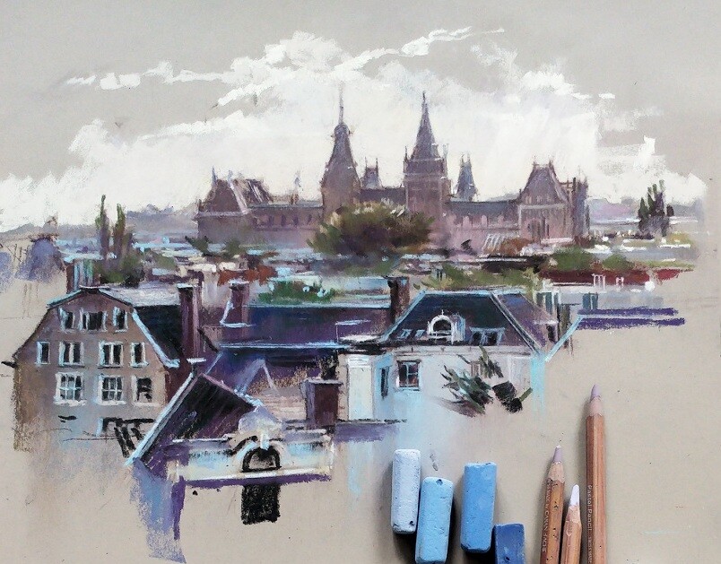 - К нему докупить набор экстра мягкой пастели, можно тематическими наборами (серые, натуральные оттенки) и обязательно набор темных (рекомендуемые Schmincke, Sennelier, Unison pastels и так далее). Учтите, что одного большого набора хватит на многие годы работы!