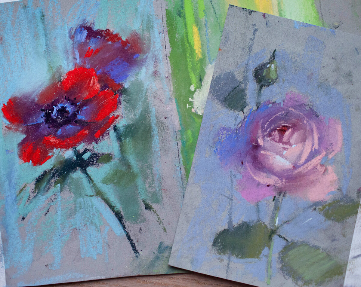 Погружаемся в мир пастельной живописи и учимся при помощи сухой пастели и буквально пары-тройки легких движений руки изображать цветы сочно, воздушно и объемно.