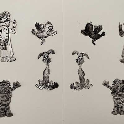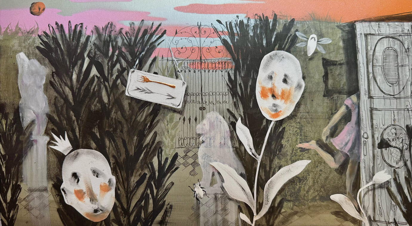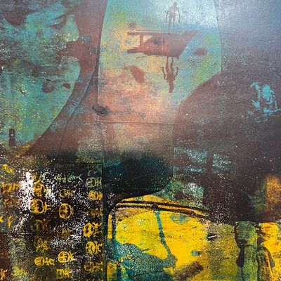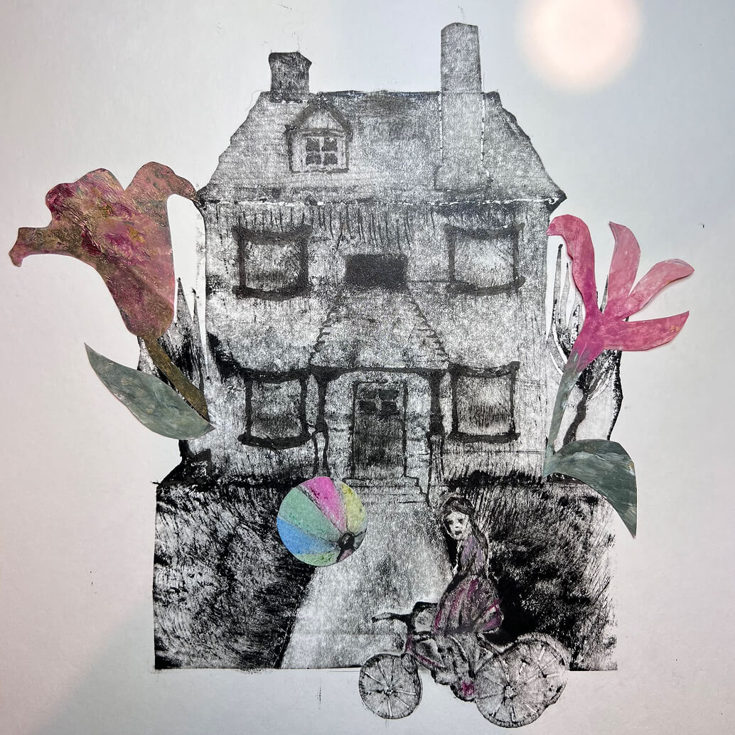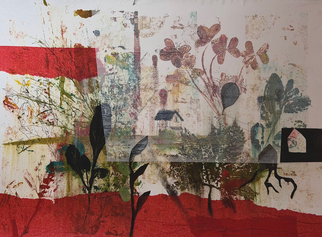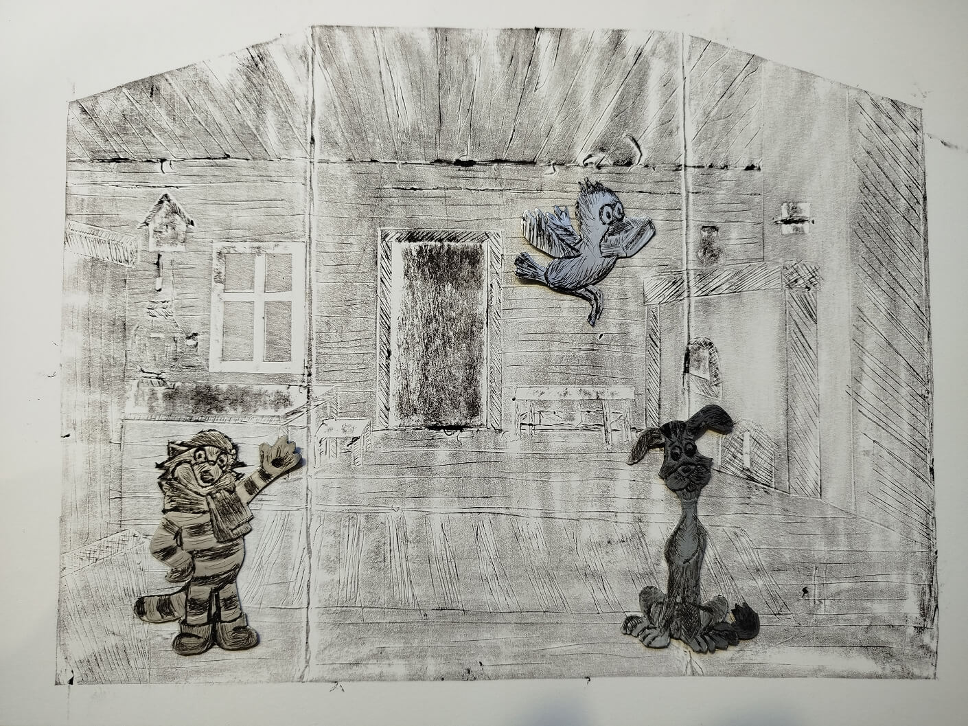 - Дорисовка оттисков смешанными материалами (масло, карандаши, коллаж)