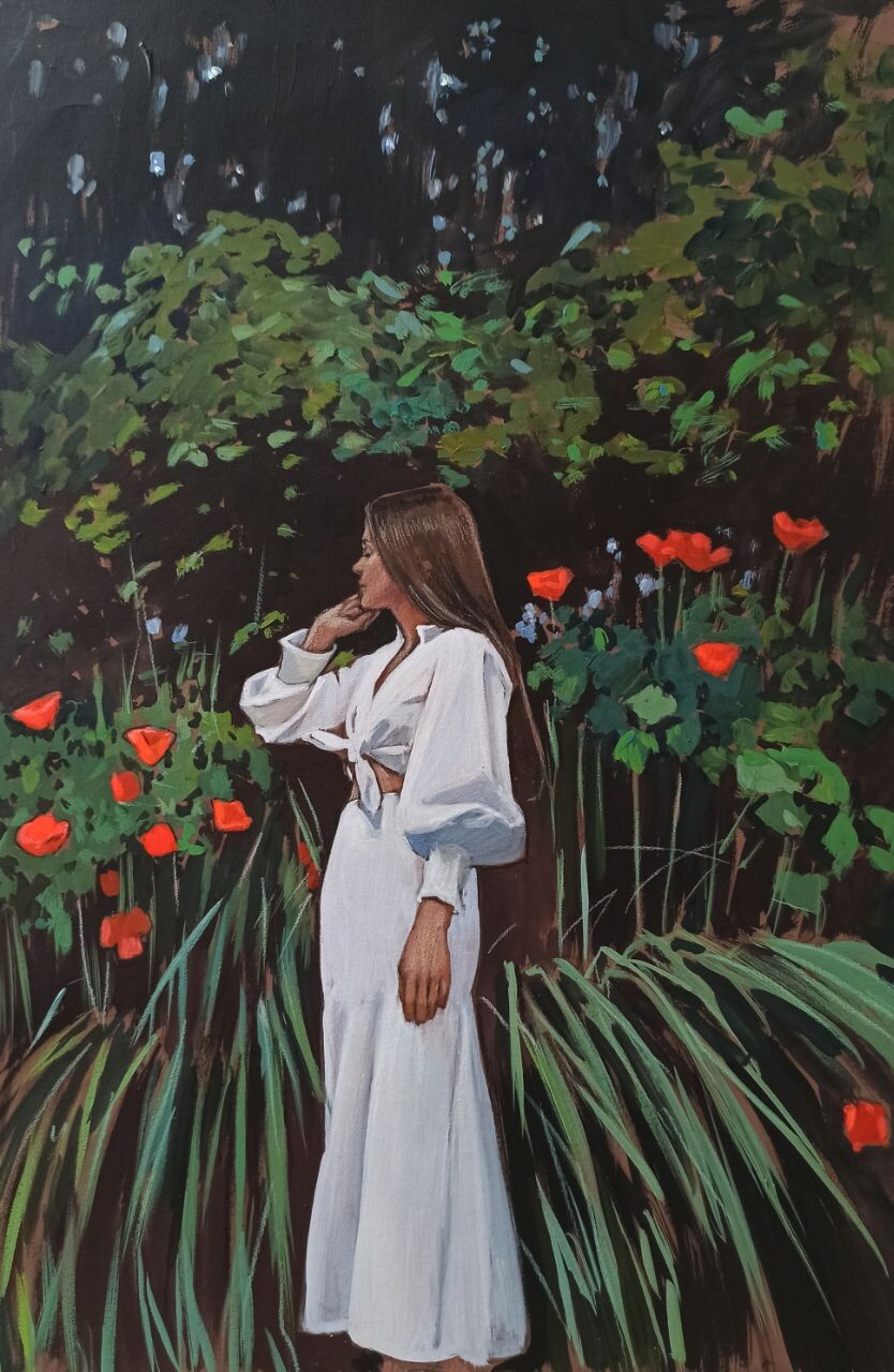 «Я очень люблю живопись, пленэр, зарисовки и наблюдать за людьми. Называю это „коллекционированием“. Собираю образы, состояния. Ищу историю в каждом прикосновении карандаша. Живу здесь и сейчас. А рисовать — это как дышать: всегда и везде. Даже когда нет кисти или карандаша под рукой, есть глаза, которые каждое мгновение сочиняют из происходящего причудливые композиции, каждую минуту цепляют из окружающего мира мотив и мысленно преображают его в картину. Я всегда вижу итоговый результат».