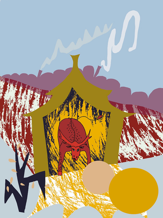 Вдохновляют авангард, советские книги и плакаты, коллаж, винтаж, тяжёлая музыка, переезды и путешествия, а также коллеги по цеху.