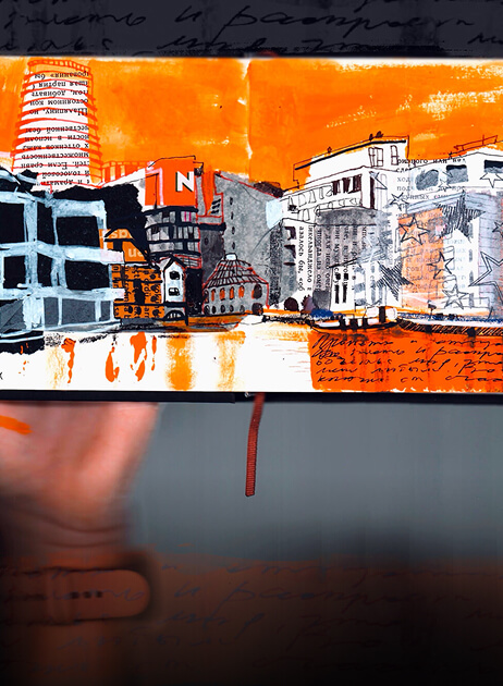 Здесь вы научитесь собирать городские виды по-новому — не штрихами, а пятнами, сочетая цвет и форму так, чтобы на бумаге появилось настроение, а не просто копия фотографии.