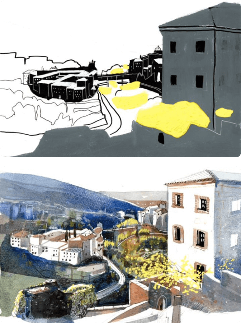 «Этот курс для тех, кто уже немного рисует и хочет сделать следующий шаг: искать свою палитру, строить композицию из цветовых блоков и работать с ритмом сцены.