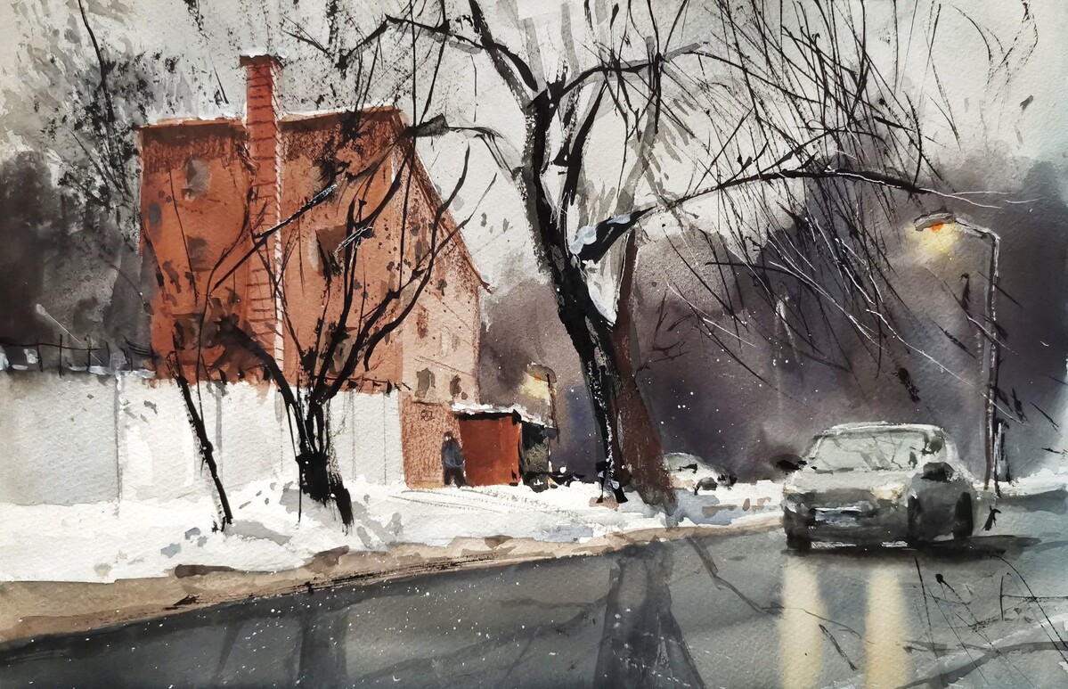 С помощью акварели мы научимся передавать ощущение от времени и места. Найдём подходящие цветовые решения и даже неожиданные материалы для рисования.