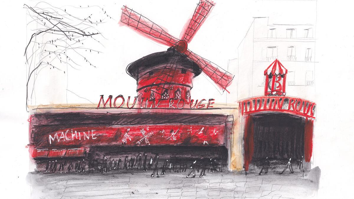 Рисуем стилизованный архитектурный пейзаж Мулен Руж в смешанной технике. Применяем все пройденные на курсе навыки