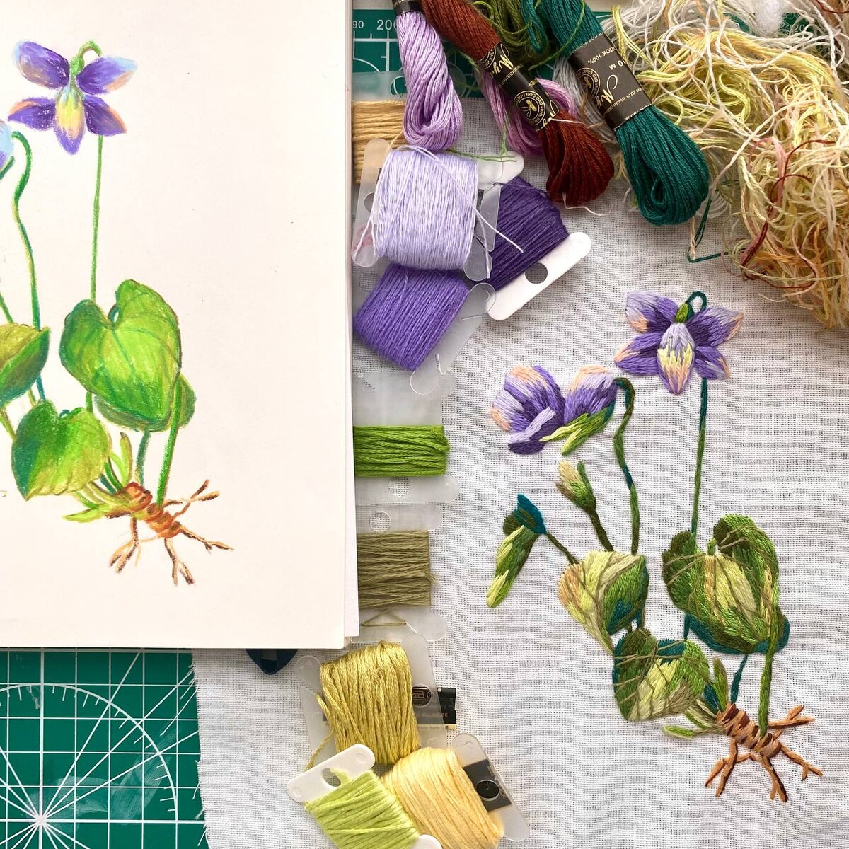 Около трёх лет назад открыла для себя современную вышивку и стала активно развиваться в этом направлении, совмещая умение рисовать с различными техниками вышивания.