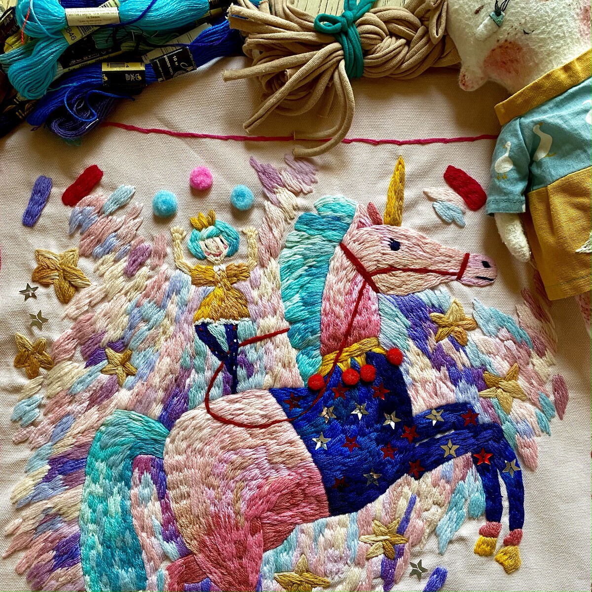 С 2019 года преподаю вышивку и выполняю коммерческие заказы — всё красиво, качественно и в духе времени.