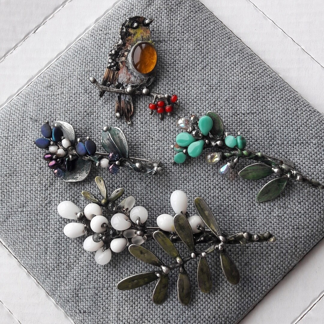 За время обучения вы сделаете 8 украшений! Несколько брошей и пар серёг, булавки и кольцо (бонусный урок).