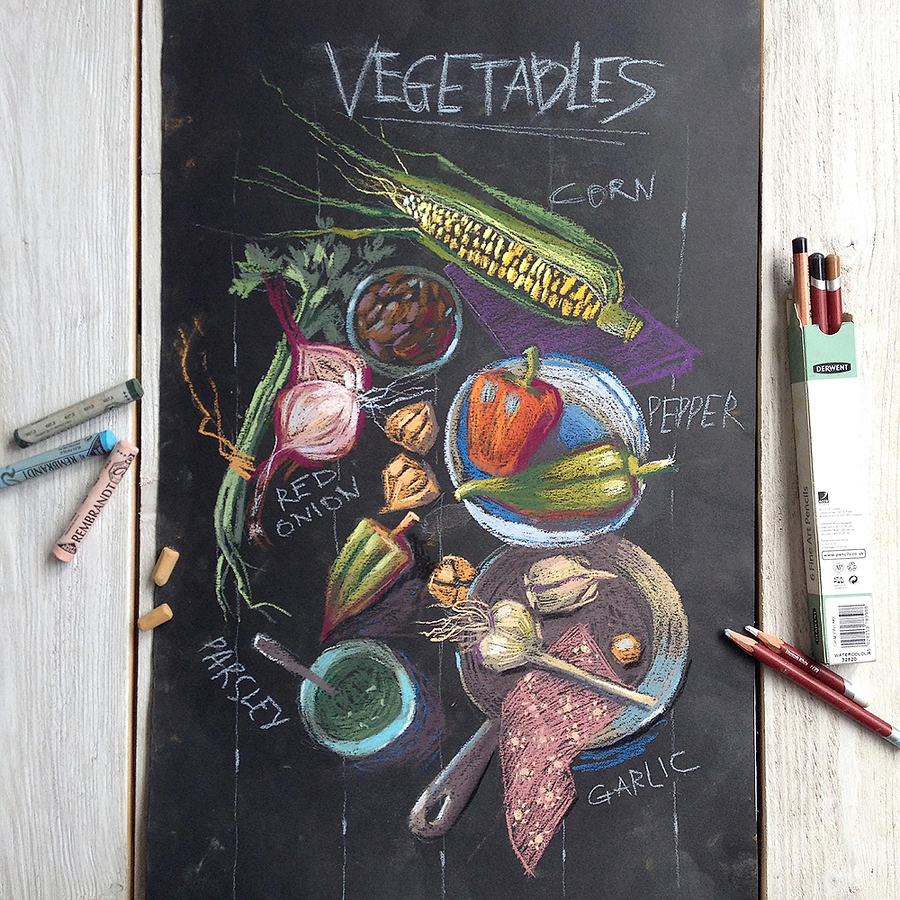 - Pastel crayons (preferably Dervent)