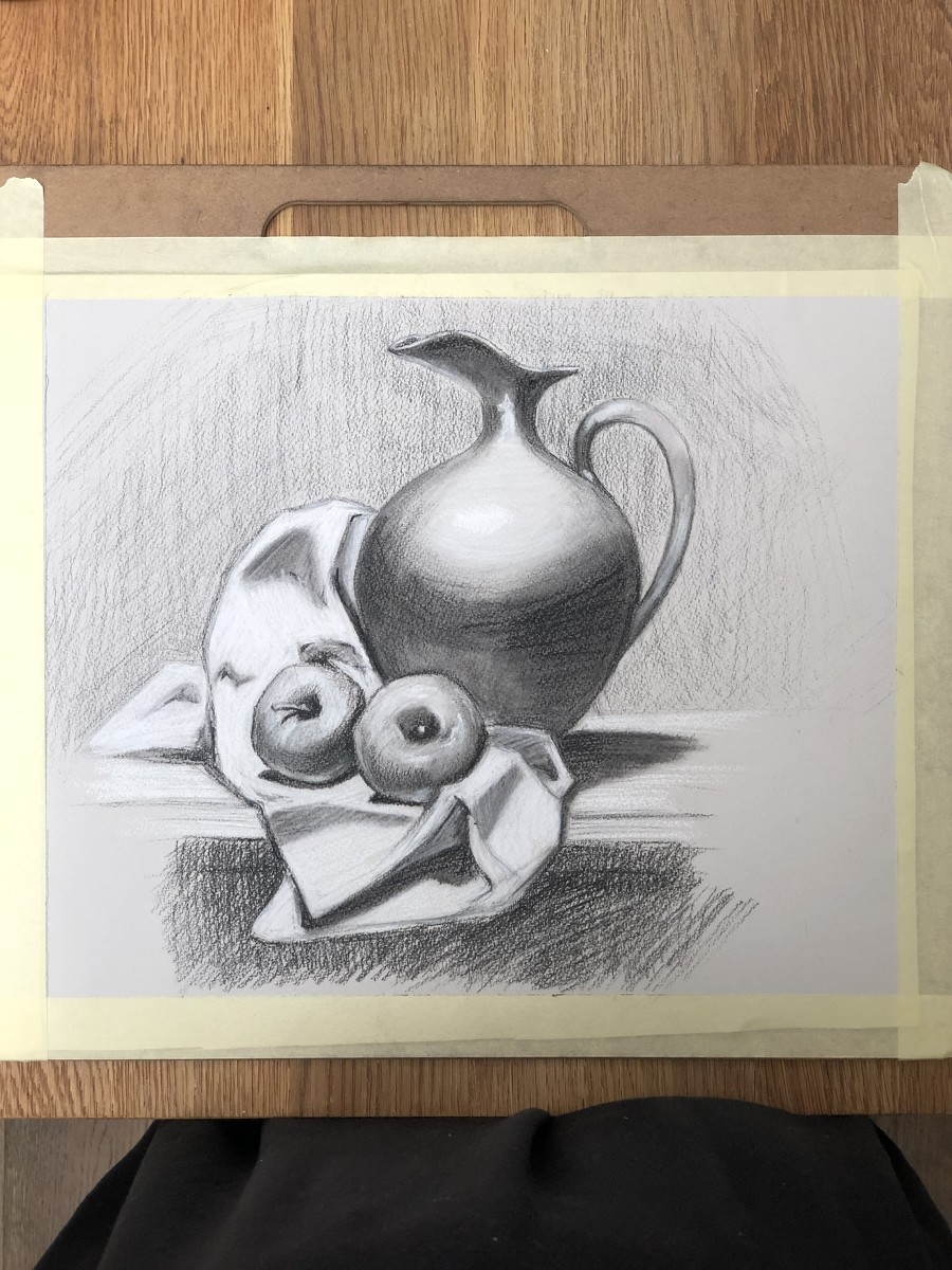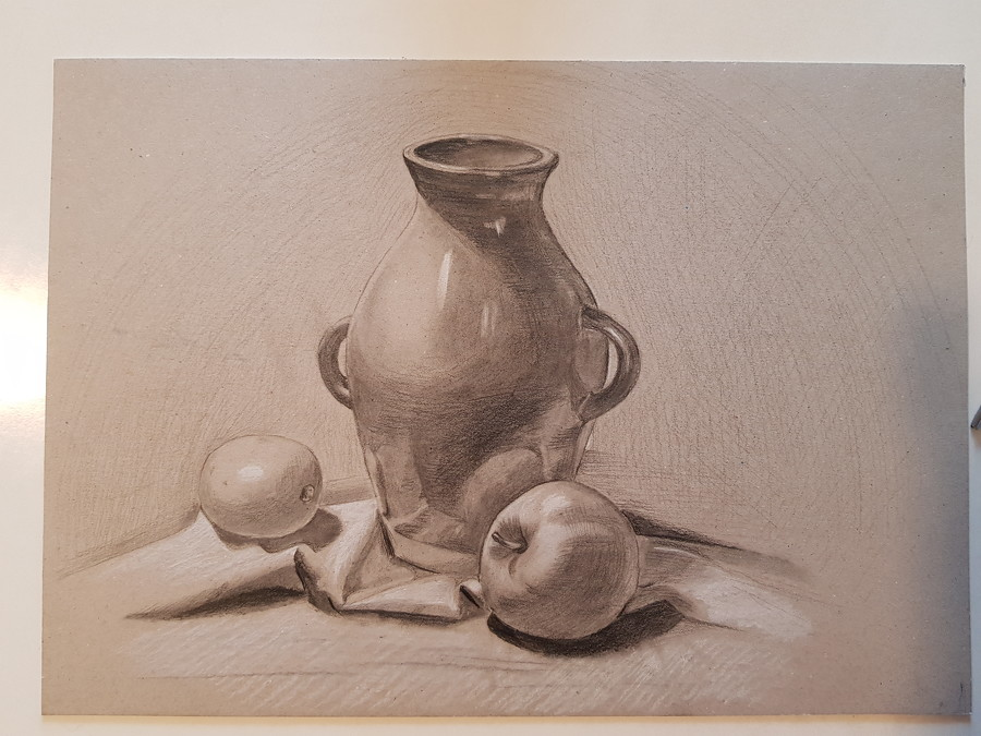 Рисуем первые натюрморты, делаем коллажи, знакомимся с углём. Применяем на практике всё, что изучили в первом модуле и дополняем новыми знаниями и навыками.