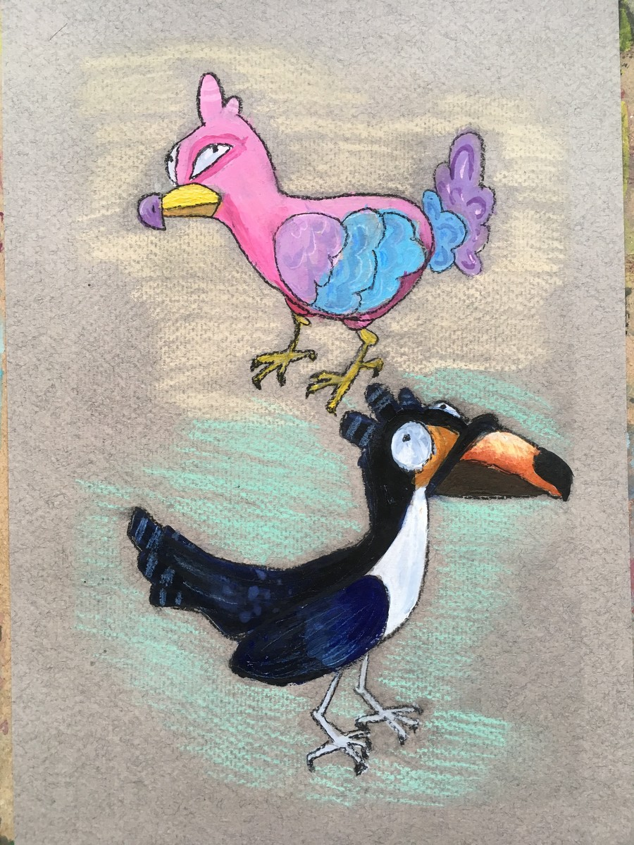 Усложняем технику и упражнения. Изучаем взаимодействие предметов друг с другом и характеры. Учимся, где и как их изображать, используя разные материалы.