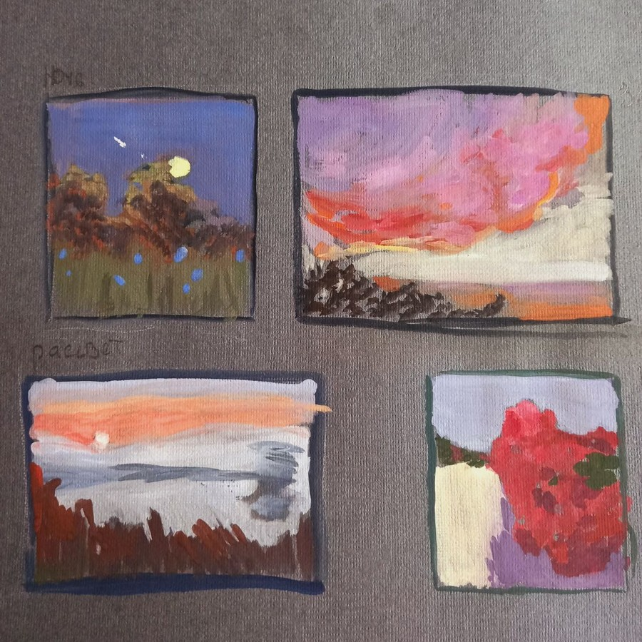 В нём мы максимально разбираем технику, делаем упражнения на постановку руки, разбираем теплохолодность, тон, цветовую гармонию, пропорцию и симметрию. Делаем много интересных, базовых упражнений, знакомимся с красками, графикой, карандашами.