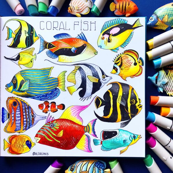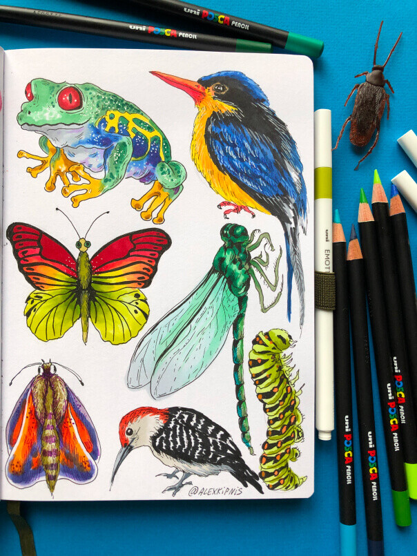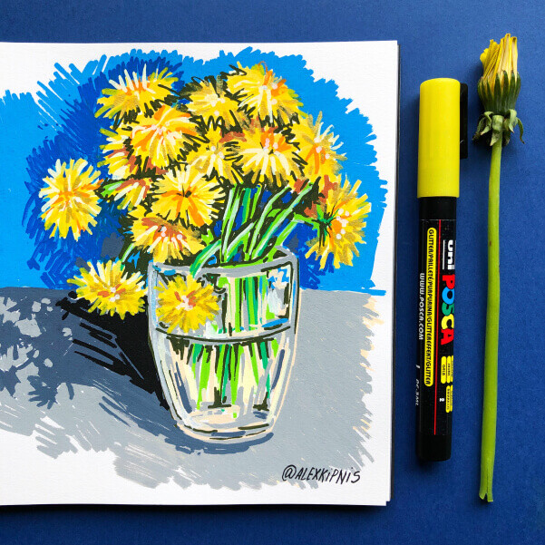 Преподаёт скетчинг детям и взрослым. Работает маслом, акрилом, но чаще всего использует акриловые маркеры Posca.