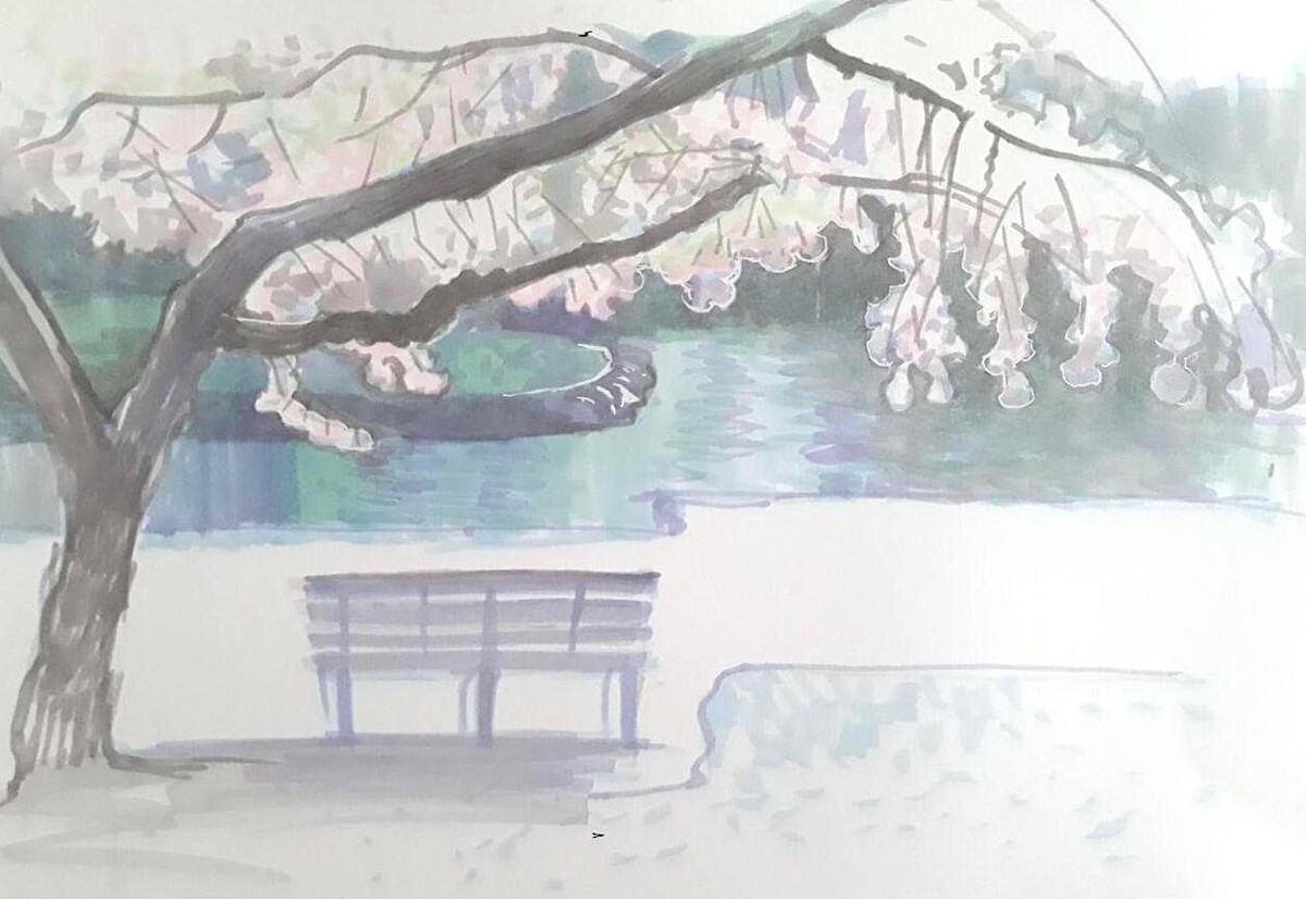 Рисуем разные варианты характерных групп деревьев и их комбинации с садово-парковыми элементами. Учимся передавать малые архитектурные формы (мостики, скамейки). Собираем все полученные знания и навыки в единый весенний скетч.