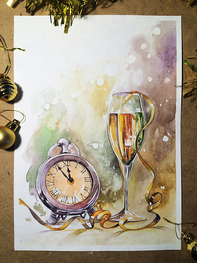 Уроки посвящены тому, что лучше всего передает праздничное зимнее настроение — новогодние украшения, бокалы с золотистым шампанским, елочку в яркой мишуре, зимний пейзаж и многое другое.