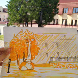 Летний экстрим 2016г. - мой первый опыт в рисовании. Затем был экстрим-скетчинг 2, где я познакомилась со спиртовыми маркерами. В январе 2017 на Акварельном Шерлоке впервые взяла в руки кисть (дет. сад и школа не считаются)).