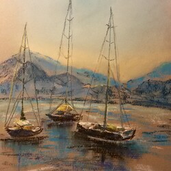 Мини-курсы. Пастель. Морское побережье. Закат в бухте Начат