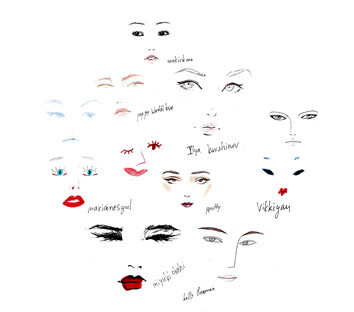 - копируем стили рисования лиц самых разнообразных иллюстраторов, изучаем линии и пятна, форму и цвет.