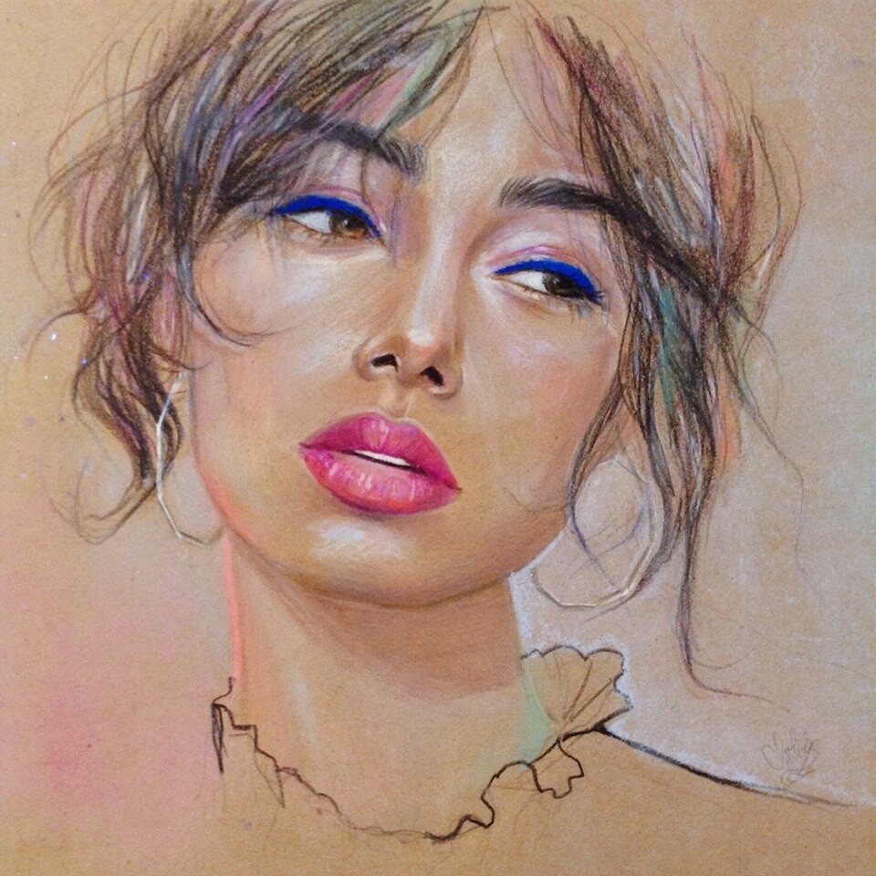 Мастер-класс по рисованию бьюти-портрета пастельными карандашами, восковыми карандашами Prismacolor и сухой пастелью.