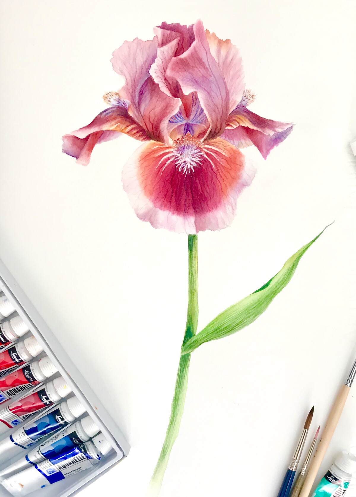 Акварель. Освоение материала, выбор кистей. Копия ботанической иллюстрации. Этюд цветка с натуры.