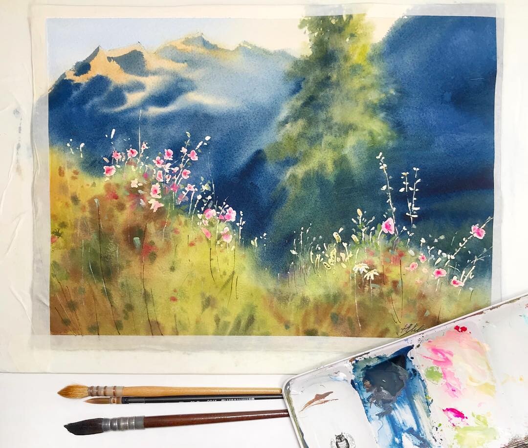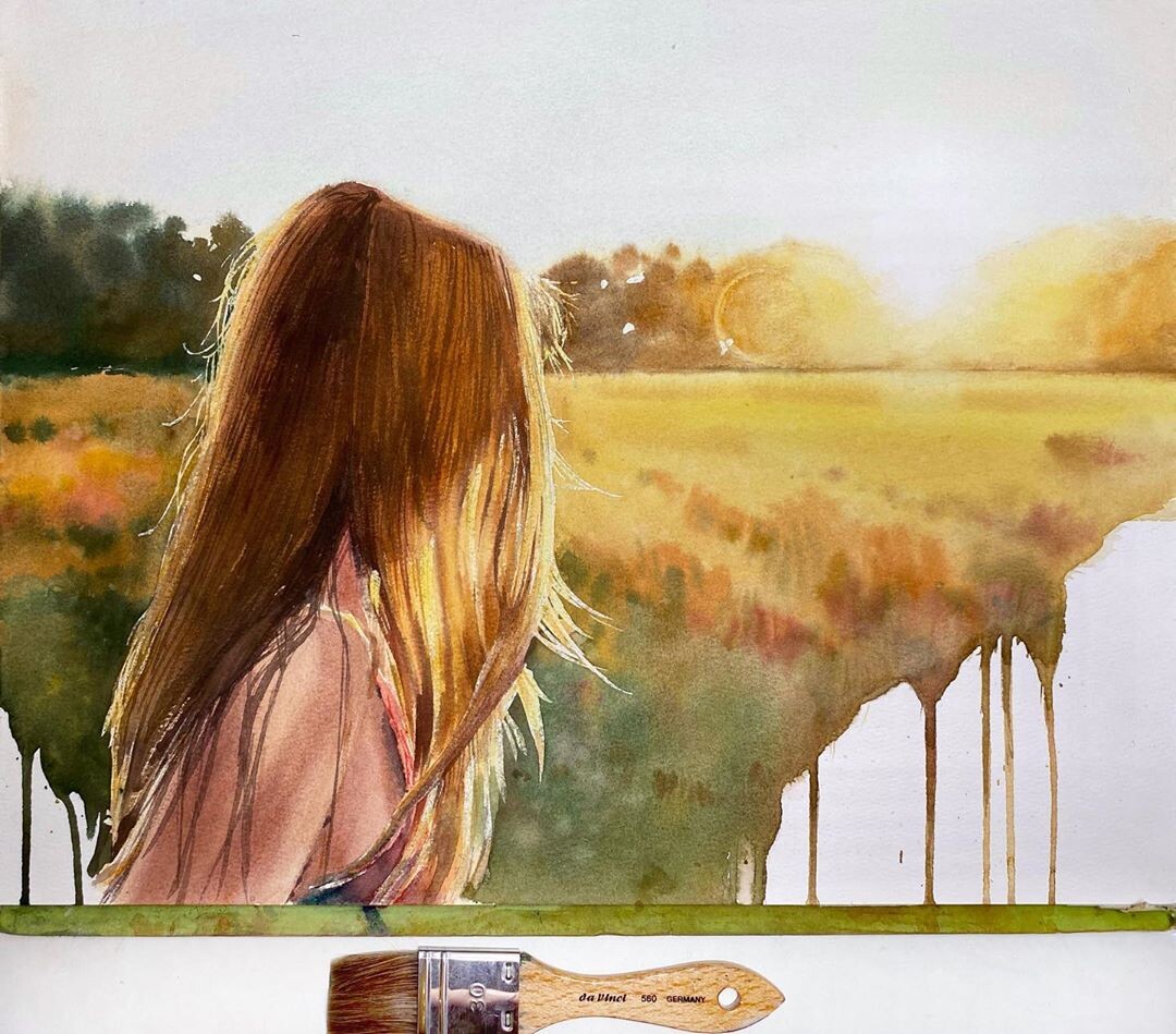 «Всё началось с маленькой белой коробочки „Белых ночей“ и склейки Гознак из ближайшего канцелярского, но этого набора хватило, чтобы мой мир перевернулся. Затем были множество обучающих курсов и живых мастер-классов знаменитых современных художников. Узнав от каждого своего учителя какую-то хитрость, лайфхак или секрет по технике исполнения, понимаешь, насколько изобразительное искусство в целом и акварель в частности — безграничны в своей силе и возможностях. И как это чудесно, что лёгким движением кисти можно создавать настроение, выстраивать ритм, проливать горячий солнечный свет или, наоборот, окатывать свежестью морозного воздуха. И хотя я сама уже являюсь автором акварельных курсов и регулярно провожу мастер-классы, процесс обучения всему этому захватывает меня ничуть не меньше, чем в тот самый первый день знакомства.