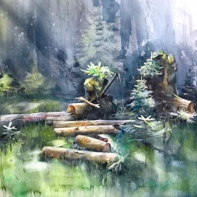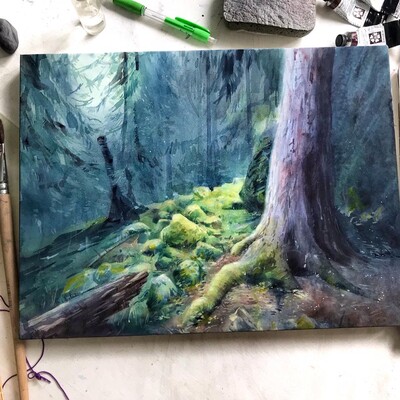 На последних курсах института (по образованию я педагог дизайна интерьера) появился большой интерес к графике, а потом стало не хватать цвета и я увлеклась акварелью. До сих пор мне кажется, что это она меня выбрала, а не я её. Постепенно появилась потребность самостоятельно углублять знания о рисовании по всем фронтам: цвет, композиция, технические приемы… В итоге куча просмотренных мастер-классов, прочитанных книг, собственных проб и ошибок. На данный момент я все ещё в поиске «своей темы», но смутное представление у меня есть, и что я знаю точно — моя любовь к деталям с годами только усиливается. Неспроста в художке на пленэрах меня называли Шишкиным, потому что я стремилась прорисовать чуть ли не каждый листик на деревьях, вместо того, чтобы обозначать крону одной массой =)