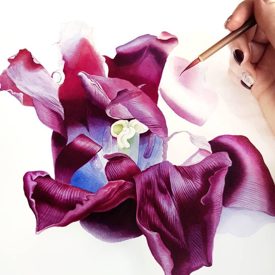 На этом уроке мы начнем с разбора правил подготовительного рисунка карандашом. Поговорим о том, чем ботанический рисунок отличается от академического. Рассмотрим основные этапы работы с цветком акварелью: основная заливка, разделение лепестков, фактура. А также изучим как писать 3 вида лепестков с разным жилкованием.