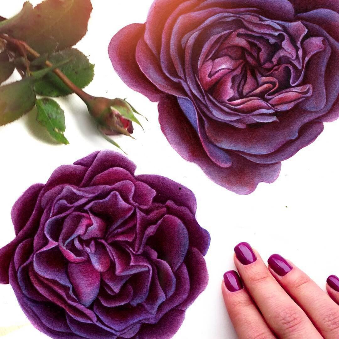 Завершающим заданием нашего курса будет ботаническая иллюстрация с розой. Мы скомпонуем на листе рисунок цветка, листьев, разных деталей. Разберем как построить карандашом сложный цветок и заложим основны объема и цвета.
