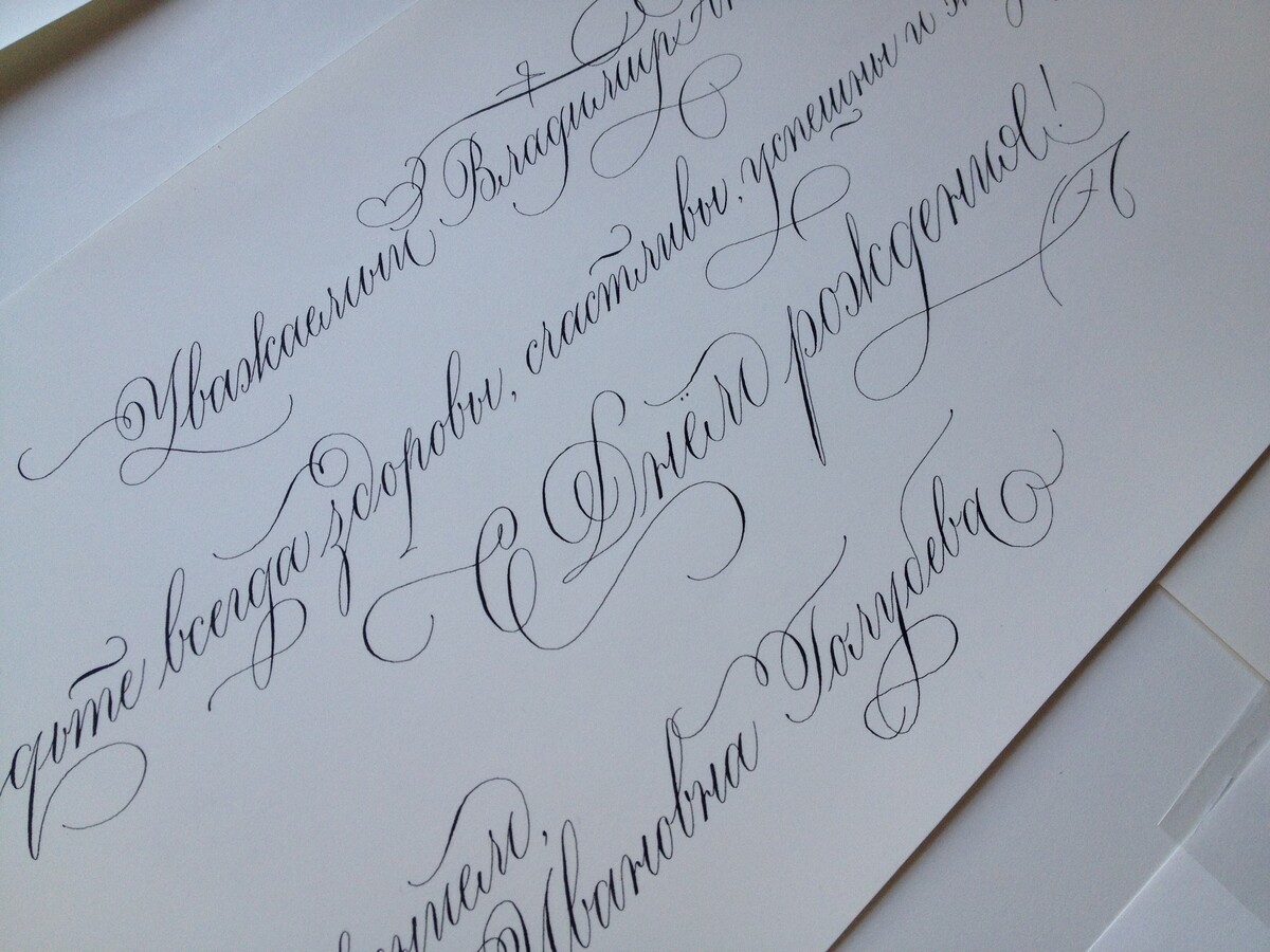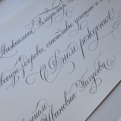 - Перейдем к перу и напишем текст классическим копперплейтом без росчерков, затем добавим росчерки в карандаше, найдем идеальный вариант и перепишем текст набело;