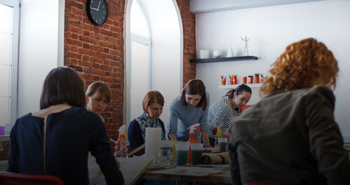 Просторная студия на третьем этаже креативного пространства «Ткачи». Здесь проходят курсы, интенсивы и мастер-классы по акварели, скетчингу, пастели и многому другому.
