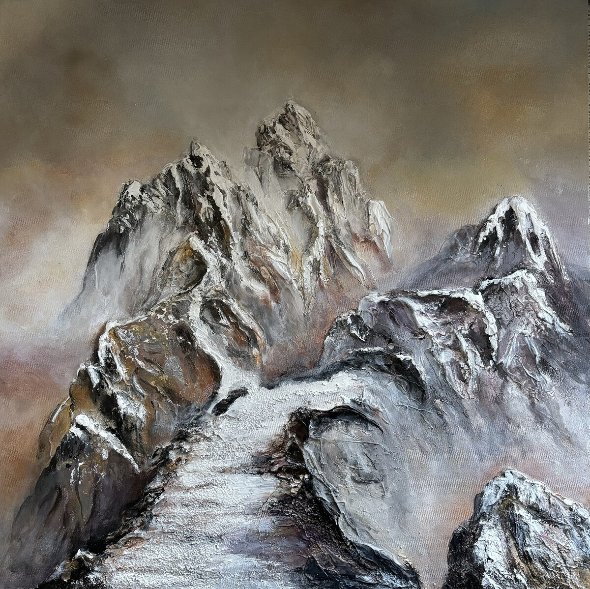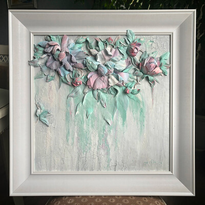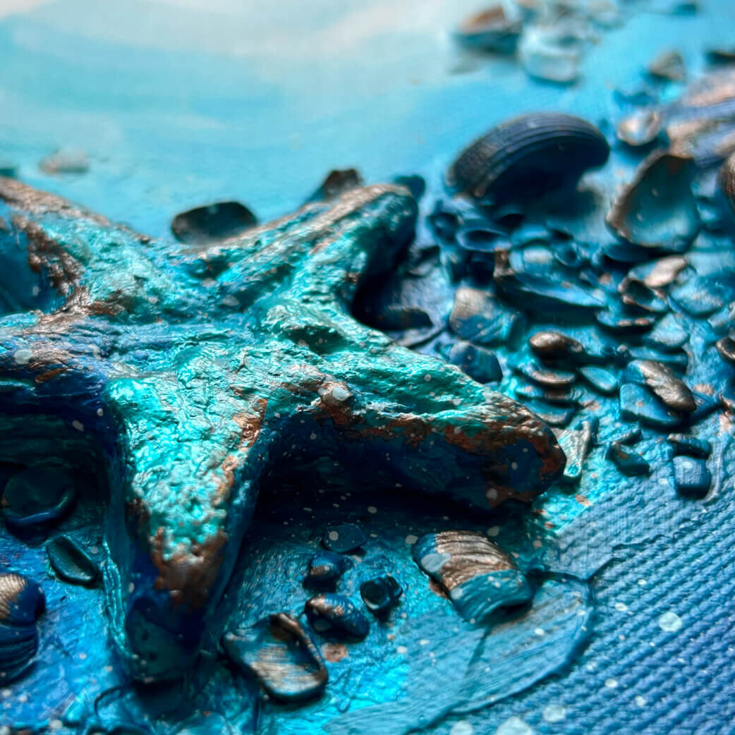 Работаем с фактурами с помощью мастихина, шпателя и губки. Делаем упор на тактильность и добиваемся эффектных результатов.