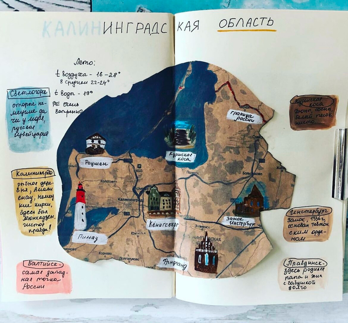 Упаковываем впечатления в творческий дневник. Учимся работать как с разворотом, так и со всем скетчбуком в целом, сохраняя одну стилистику и общую мысль.