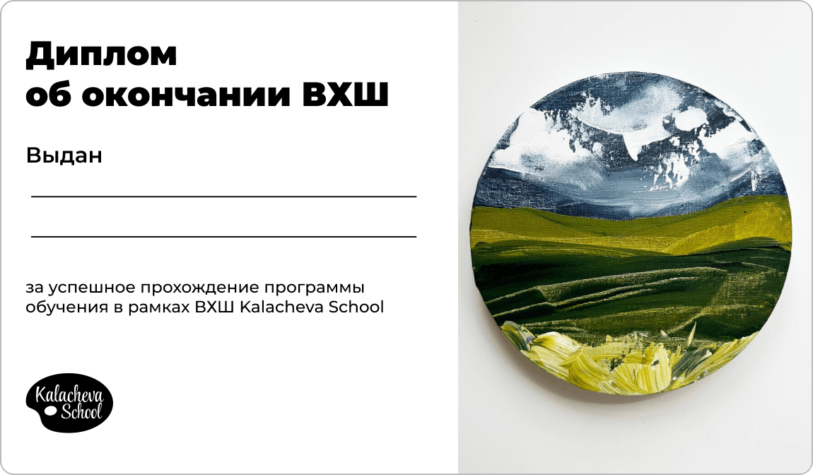 ВХШ это отдельный образовательный проект в рамках Kalacheva School. Его задача — вывести учеников на новый уровень мастерства, сделать хобби профессией, дать художникам инструменты для монетизации творчества.